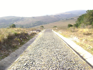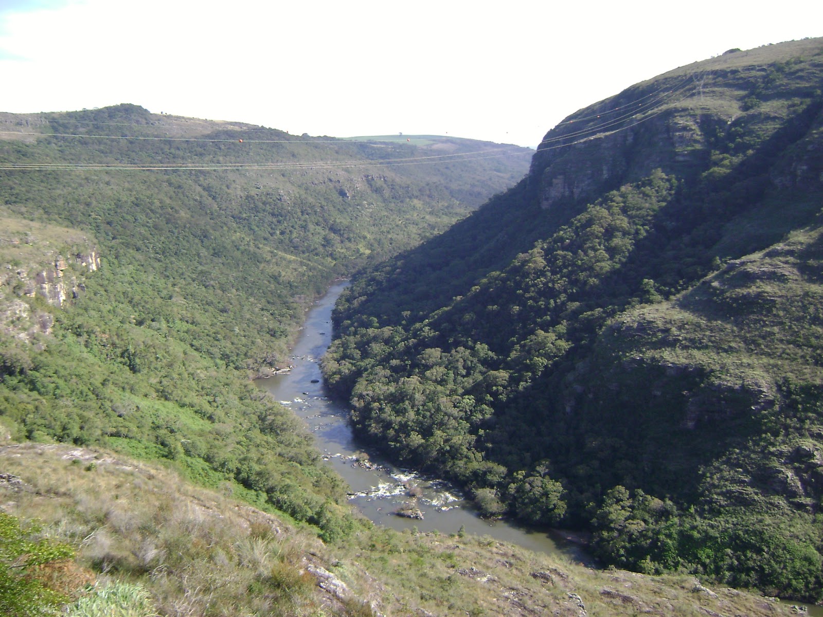 Feriadão de 9 de julho chegando, começou a me dar coceira para acampar. Pesquisei na internet uns lugares relativamente próximos, e achei a cidade de Tibagi, no norte do Paraná. Vi que lá tem o Parque Estadual, do Guartelá, onde tem um Canyon. Revolteio, pra lá mesmo. Na sexta à noite, saí da aula às 22h, peguei a Mi e as malas em casa e fomos. OBS: Em Jacarezinho-PR, tem um pedágio por volta de R$14! Chegamos lá por volta das 2 da madrugada. Obviamente não encontramos camping (muito menos aberto, pois o feriado é só em SP, além do frio que estava). Acabamos passando a noite em uma pousadinha “meia-boca”, mas barata. No dia seguinte demos uma volta pela cidade. Reparamos que quase tudo tem “Mercer” no nome, ruas, praças, etc. Conhecemos a praça central, o Museu do Diamante, e vimos que a cidade teve origem com a procura de diamantes do Rio Tibagi (que passa ao lado da cidade e corta o Canyon), inclusive no museu tem muitos objetos relacionados a essa época, até um escafandro utilizado para esse fim.