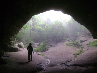 No dia seguinte, fomos ao Parque Estadual da Serra do Ibitipoca, a atração local. Obs: No caminho tem uma senhora que faz um pão de canela que é famoso por lá, não deixe de experimentar. Chegando no parque, pagamos R$6 cada um para entrar. Fomos de carro até a portaria, onde tem estacionamento, uma maquete com as trilhas, informações, banheiro e camping. Tudo lá é muito limpo e bem cuidado. Às 8hs iniciamos a maior trilha do parque, a Janela do Céu (20km de extensão). Estava muito nublado, e a trilha é inclinada até o ponto mais alto, a “Lombada”. No caminho há algumas grutas (muito legais, como a dos Fugitivos e dos Três Arcos).