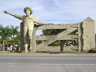 Vou postar as viagens em ordem cronológica – das mais antigas para as mais recentes. Talvez as viagens mais antigas eu não consiga detalhar tanto (até porquê não vou lembrar de tudo), então se alguém conhecer os locais e quiser acrescentar alguma informação (ou corrigir), agradeço. A primeira viagem que vou postar é uma que fomos de carro (Uno 1.0) com minha esposa Michelle para o sul de Minas Gerais. A viagem durou cerca de 15 dias. A viagem de estréia do blog Revolteio! Conhecemos muita coisa legal, rodamos uns 2.000km. Saímos de Bauru, passamos por várias cidades, entre elas, Borda da Mata, Jacutinga e Ouro Fino. O cara aí da foto é o Menino da Porteira. Aliás, na cidade de Ouro Fino quase tudo tem esse nome (Supermercado Menino da Porteira, Farmácia Menino da Porteira, etc.) Confira mais lugares legais do sul de MG clicando AQUI.