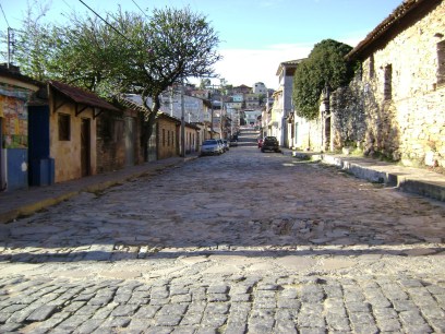 Ah, sim, e os quilômetros finais de Três Corações a São Thomé são MUITO íngrimes. O Uninho sofreu para chegar. Pavimentado, mas sofrido. Chegando na cidade, já quase à noite, vimos como compensa a ida até lá. O pavimento é todo de pedras “São Tomé” (muito irregular, o carro não passa de 20km/h). Aliás, as casas, bancos, calçada, TUDO de pedra. Me senti nos “Flintstones”. O carro não passa de 20km/h, pois o calçamento é muito irregular. Lá o clima é exatamente como dizem: A cidade é cheia de hippies, lugares esotéricos, gnomos e coisas do tipo. No meio da cidade há uma igreja antiquíssima e um boteco – tocando rock ! E como era julho, estava muito frio, e um vento absurdo !