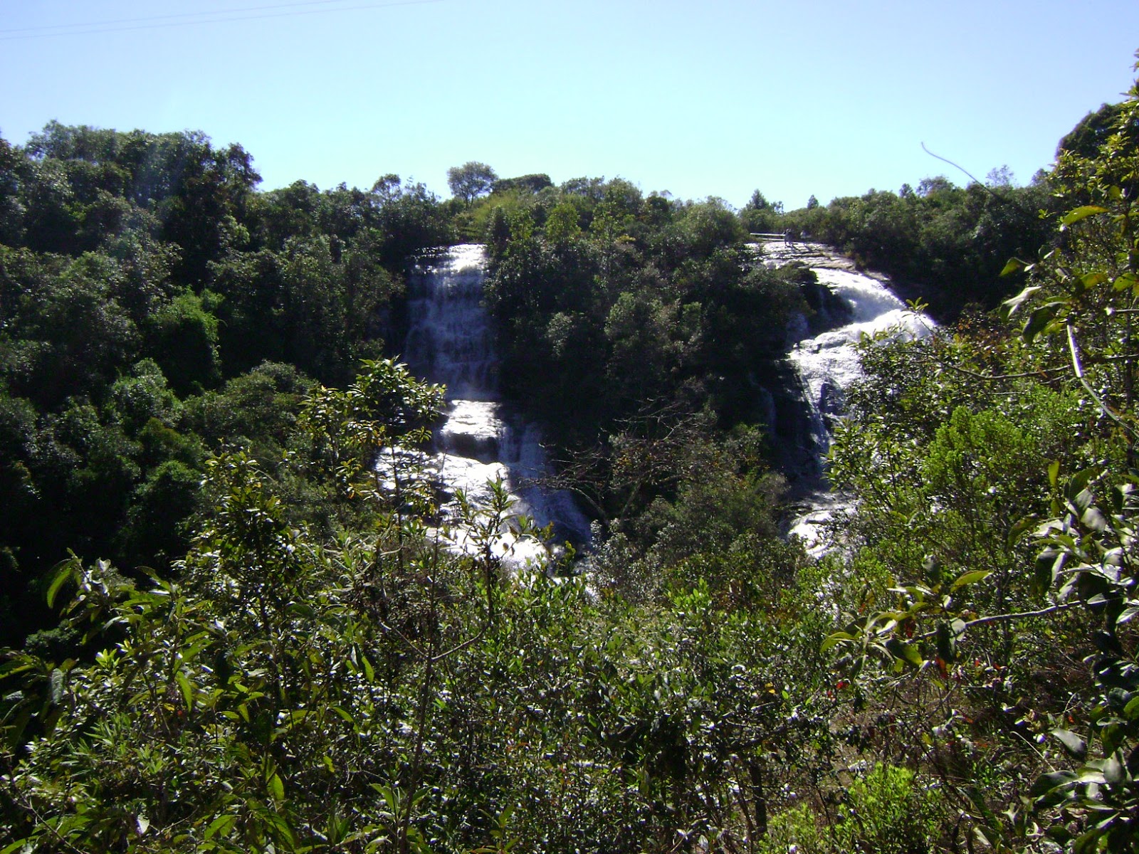 Destino: Bueno Brandão, a capital mineira das cachoeiras. Pegamos as tralhas e as barracas e saímos de Botucatu bem cedo, eu, a Mi, a mãe dela e o padrasto. Passamos por Ouro Fino (paramos novamente para a foto com o Menino da Porteira). Chegamos ao destino ainda de manhã, já procurando pelas cachoeiras. A primeira que conhecemos foi a Cachoeira do Luís. No local há uma fazenda com vários atrativos e a entrada custava R$3 por pessoa. Primeiramente descemos até cachoeira propriamente dita. É bastante alta e se divide em duas, com árvores no meio. Na parte lateral tem um mirante, e a cachoeira não é muito íngrime, a água escorre pelas pedras. Não entramos na água pois estava muito frio.
