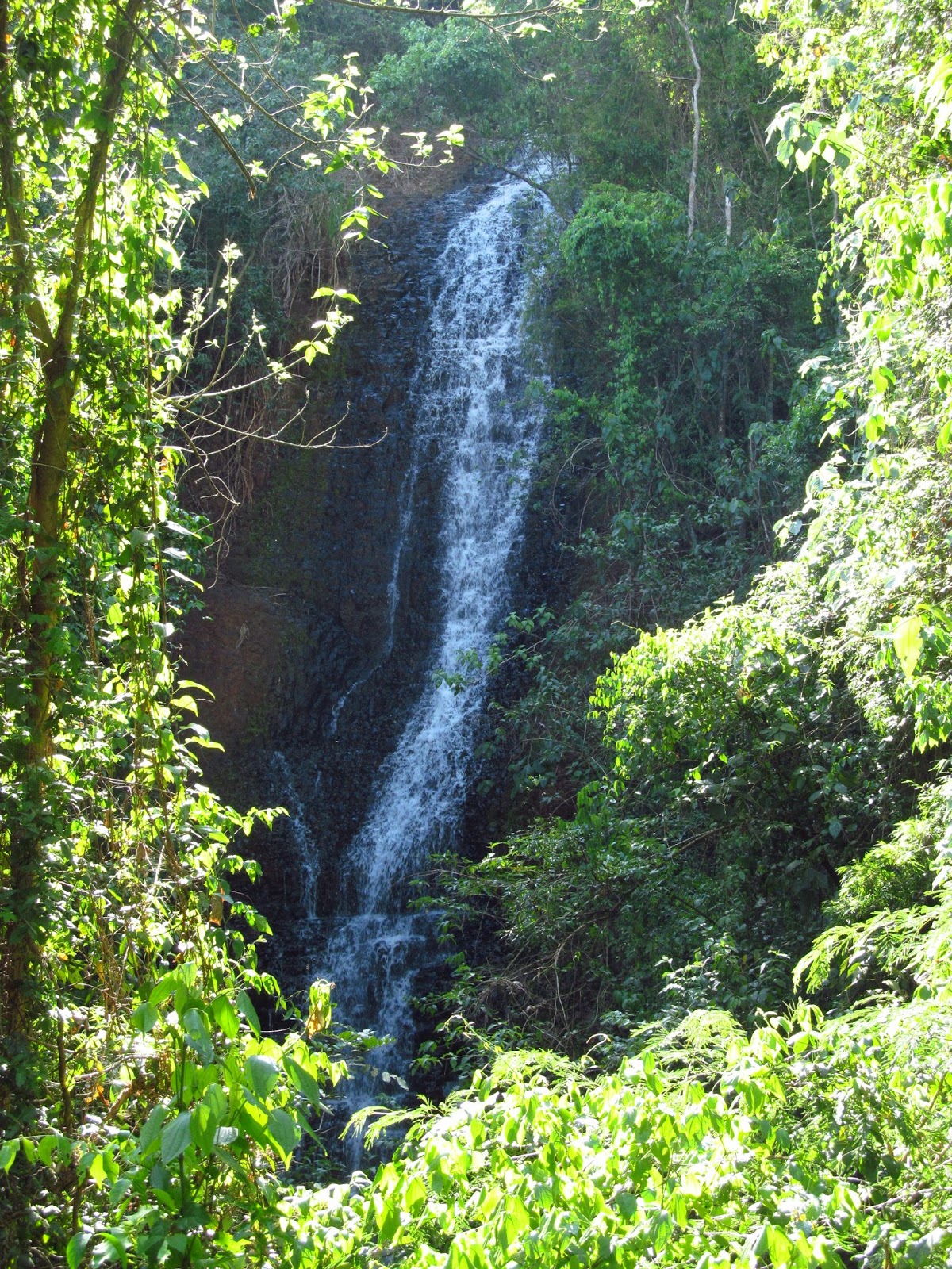 Bom, então você deverá subir até o começo da trilha, e agora tomar a trilha da esquerda. A mata é bem fechada, mas a trilha é bem demarcada. Não tem como errar. Para chegar nas cachoeiras anda-se cerca de 30 minutos. No final da trilha, toma-se a trilha do lado esquerdo para chegar na primeira cachoeira. Essa queda é conhecida como Cachoeira da Pedreira, e é a mais alta delas. Tem cerca de 60m.