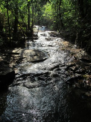 Vale ressaltar que se você continuar descendo o rio, depois de mais uma meia hora de caminhada pelo leito, você verá um outro riacho que se junta ao da Canela. Esse riacho é o rio que vem da cascata da Marta. E se descer mais ainda, chegará na Cachoeira da Indiana