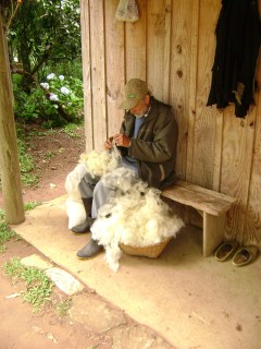Dono do sítio processando a lã
