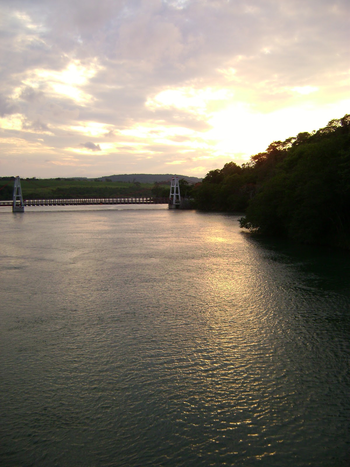 Depois de nadarmos bastante e conhecer o lugar, começamos a subir o rio para voltar ao camping. Uma chuva forte nos pegou no caminho e começou a esfriar. Ao chegar no camping, já no final da tarde, pegamos o carro e fomos até a cidade, mas com a chuva que estava, não deu para conhecer nada. Voltamos quase à noite para o camping, e a chuva já tinha quase parado. Para o nosso desespero ficamos sabendo que iria ter uma festa no camping (quase uma rave, rs). Enfim, a noite foi péssima. No dia seguinte amanheceu bem frio, e como já havíamos conhecido o maior atrativo da cidade, levantamos acampamento e ficamos rodando por lá e decidindo para onde iríamos, pois ainda tínhamos dois dias pela frente. Eu e a Mi então lembramos de Tibagi, que não era tão longe e tinha coisas legais. Então seguimos viagem novamente. Chegamos ainda de manhã em Tibagi. Estava bem frio, e fomos ao mirante do rio.