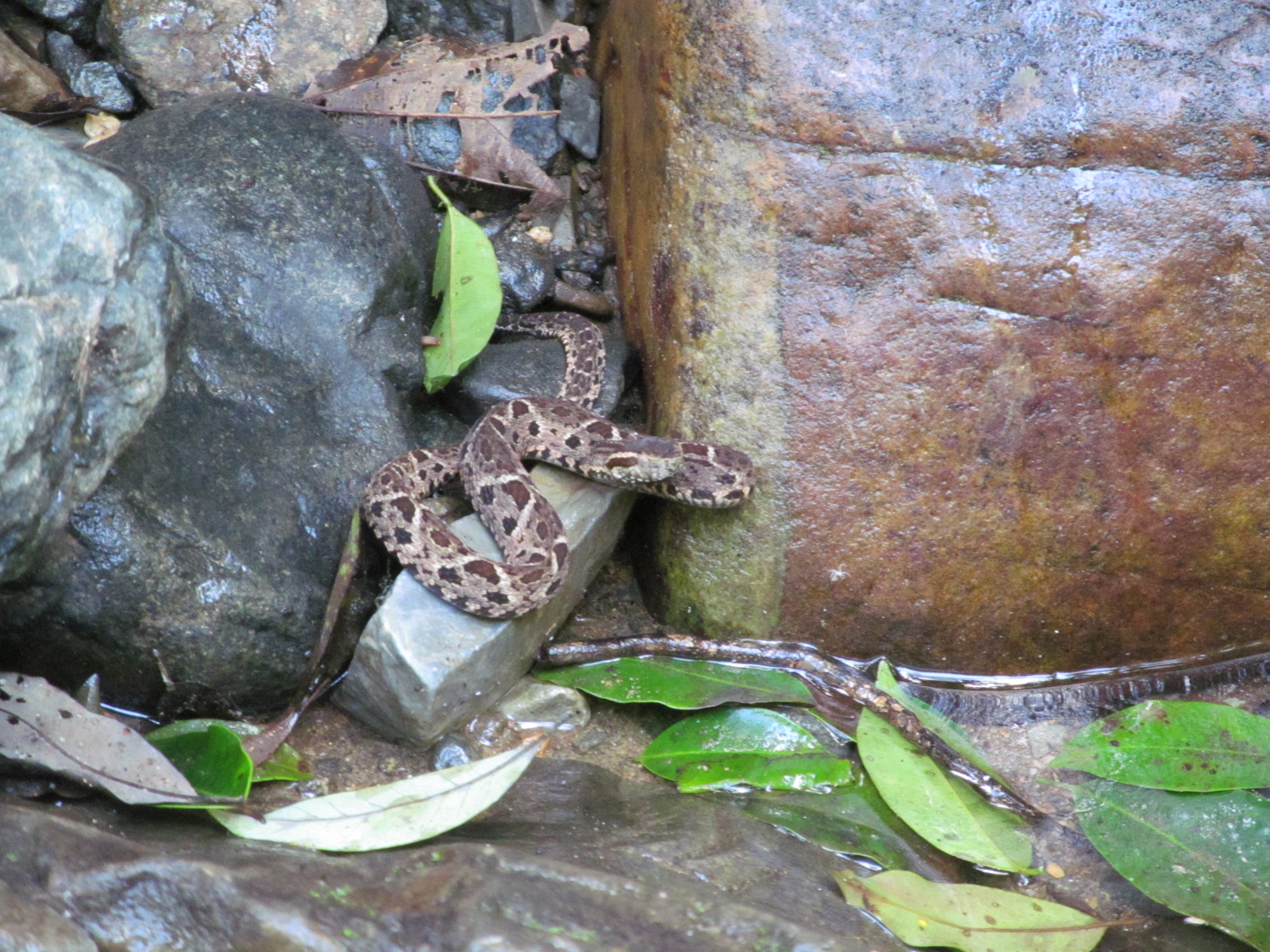 Voltando a trilha, passamos todos por uma pequena cobra cascavel, só a moça do outro casal que viu, ela estava por último na trilha. Ainda bem que ninguém pisou !