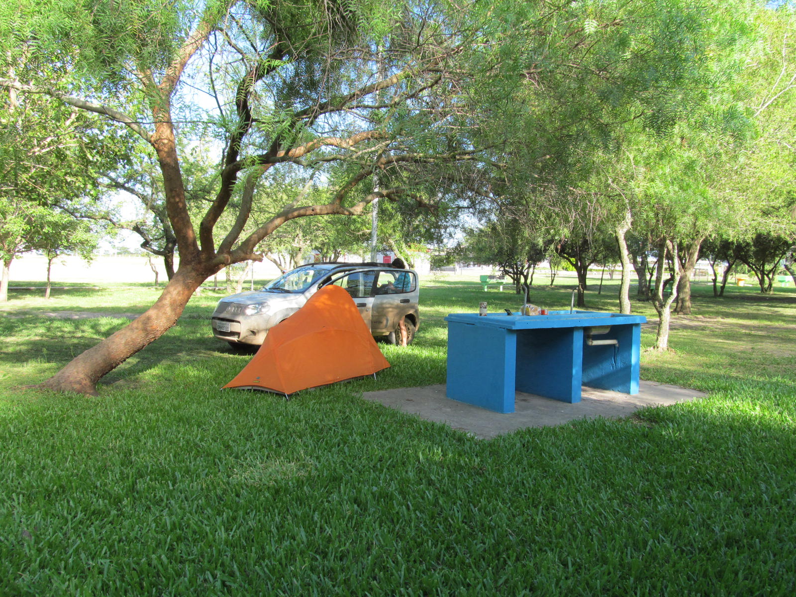 Já em território argentino, atravessamos a cidade de Paso de los Libres, encostada no Brasil e seguimos pela Ruta 127 rumo ao sudoeste. Passamos por algumas cidadezinhas como Los Conquistadores, Federal e Bovril, mas não paramos. Mesmo não sabendo necas de espanhol, conseguimos entender bem as placas. Com um pouco de esforço conseguimos entender as pessoas e nos comunicar durante toda a viagem. Aliás, não levamos GPS, apenas alguns mapas impressos e pedimos informações todo o tempo. As rodovias argentinas (pelo menos as que passamos), em sua maioria são de pista simples, mas bem sinalizadas e com pouquíssimo movimento. Também não tem muitos pedágios, e a maioria custa cerca de R$5. O limite de velocidade nessas rodovias quase sempre é de 130 km/h pois são muito retas e planas. Na província de Entre Ríos (encostada no Brasil), fomos parados pela polícia argentina cerca de 5 vezes (em 500km de estrada), ou seja, quase todos os postos rodoviários nos pararam. No geral os policiais foram bem educados, mas perguntam sobre toda a documentação e itens obrigatórios. Como estávamos com tudo que era exigido, não tivemos problemas. Paramos na cidade de María Grande, e ficamos no camping do Termas de María Grande. Pagamos um valor quase simbólico para acampar, algo equivalente a R$5 cada um. O local para camping é bem gramado e plano, com muitas árvores. Pudemos parar o carro ao lado da barraca e tem muitas churrasqueiras, bancos e mesas, além de ser bem iluminado à noite. Os banheiros, impecáveis. Por mais o equivalente a R$20 (em pesos argentinos), pode-se usar as piscinas de águas termais (Obs: A água das piscinas é salgada !)