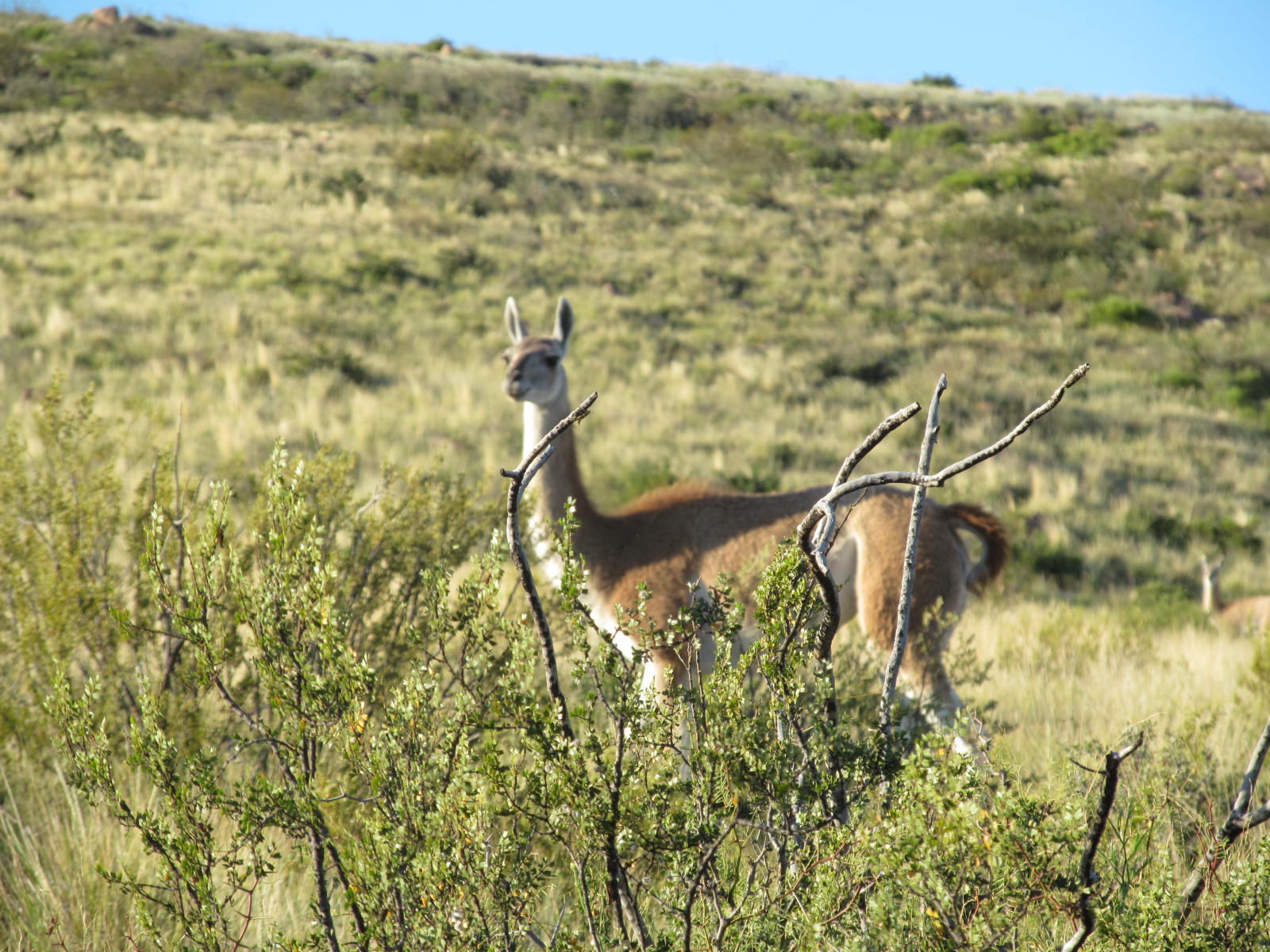 Acordamos cedo e continuamos na estrada. O clima e a vegetação cada vez mais secos ! Nessa região a vegetação já se apresentava bem escassa e ventava muito. Na Argentina, as regiões mais centrais e próximas aos Andes são mais secas, pois o ar úmido do Pacífico não consegue atravessar a cordilheira. Nesse dia percorremos cerca de 500km e paramos à tarde no Parque Nacional Lihue Calel. O parque fica próximo à cidade de Puelches, na província de La Pampa. A paisagem lembra o sertão nordestino. A entrada no parque é gratuita, e há área de camping (também gratuita !). O camping tem sombra, bancos, mesas, parrilleras (churrasqueiras) e tanques para lavar louça/roupa. Também tem banheiros com chuveiro quente.