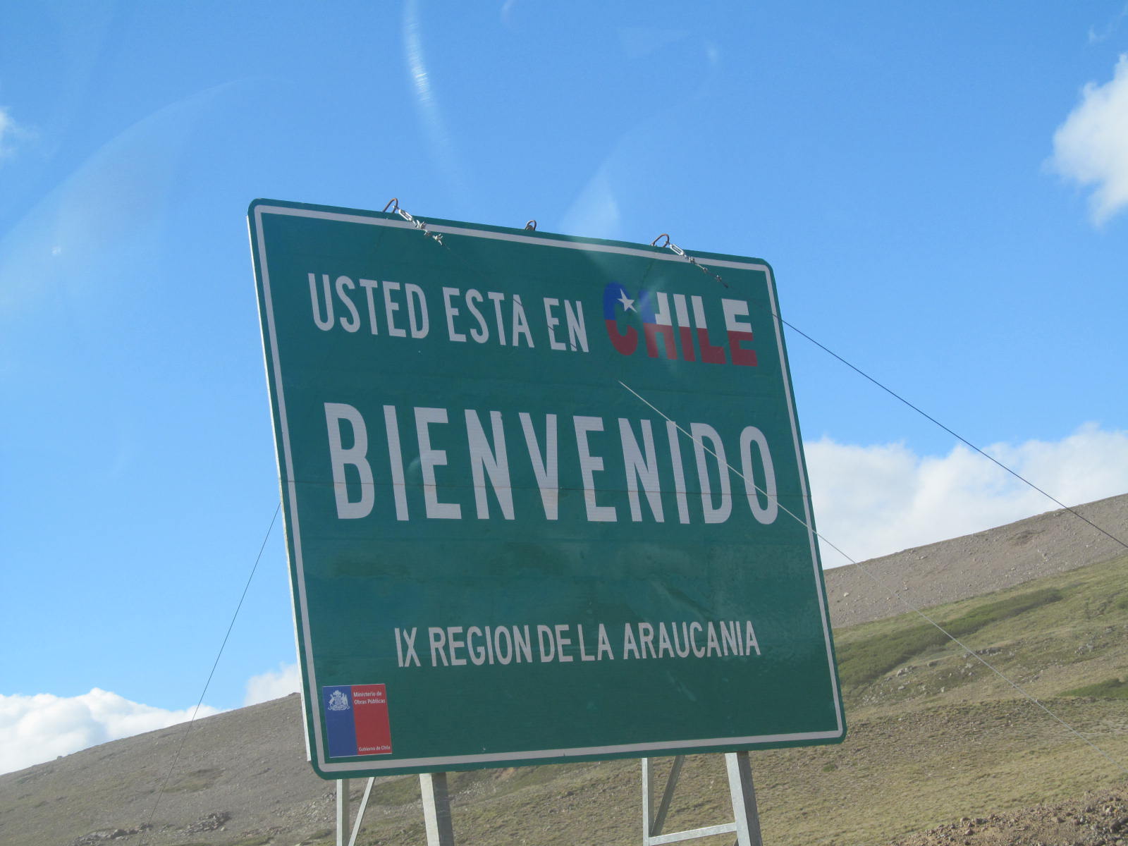 Chegamos ao Paso Pino Hachado (a divisa Argentina/Chile). Estacionamos, e com aquele vento entramos na aduana argentina. Chegando lá, fizemos os trâmites de saída do país (cerca de meia hora), e continuamos a viagem. Descemos a cordilheira e chegamos na pequena cidade de Liucura, já em território chileno e paramos na aduana. Fizemos o documento de entrada (válido por 90 dias) e tivemos o carro inspecionado, a procura de frutas e vegetais “in natura” ou carne fresca. Quem carrega esses produtos, ao atravessar alguma fronteira deve jogá-los fora ou consumir no local, enfim, não pode adentrar no país com esses itens. E no Chile, especialmente, fomos revistados com mais rigor do que na Argentina.