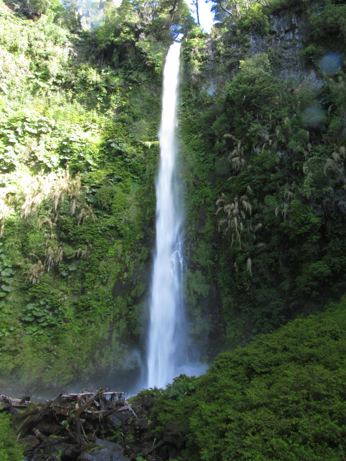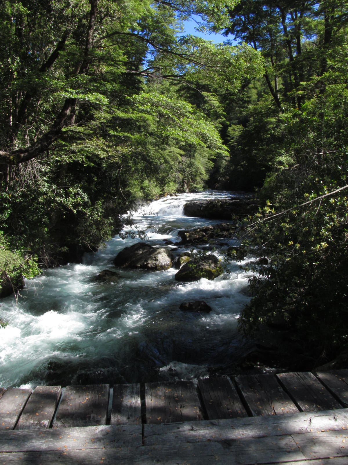 No dia seguinte, andamos pela cidade, vimos o lago (que se parece com um mar, de tão grande e azul) e viajamos mais um pouco até entrar então no Parque Nacional Villarrica, também com nossos passes anuais. Fizemos uma pequena trilha em meio à floresta pinheiros, vimos rios e mais algumas montanhas ao redor. Saímos do parque, e entramos em outro setor, também do Parque Villarrica, o Sector Quetrupillán. Por volta das 18hs, paramos em um camping, particular, mas dentro do parque. Montamos nossa barraca e pagamos o equivalente a R$20 cada. O camping não tinha água quente, mas em compensação, havia uma cachoeira sensacional.