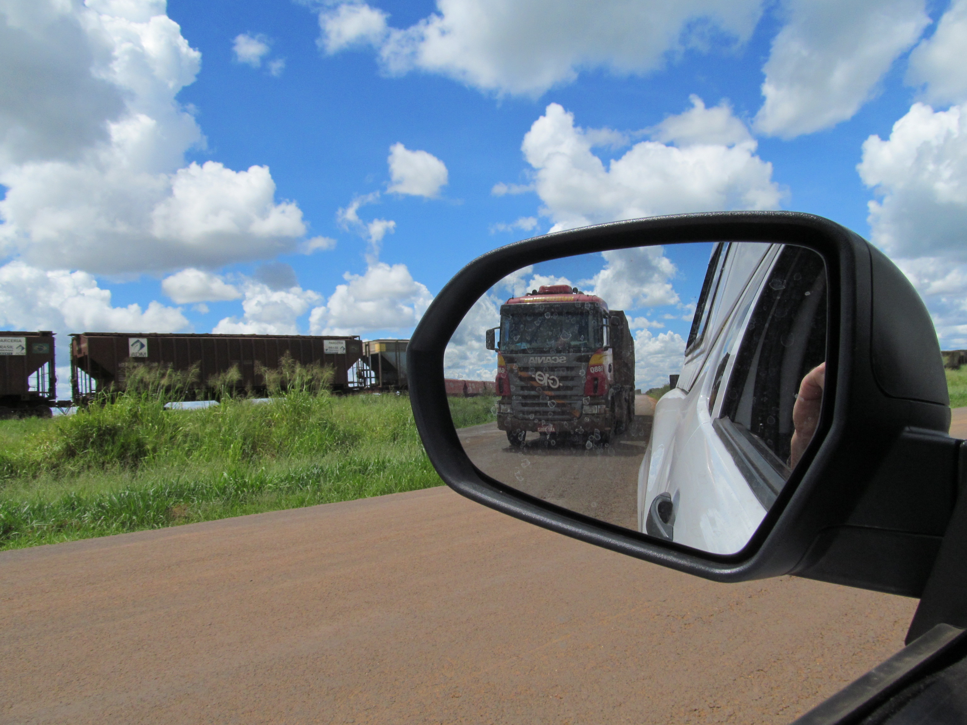 Quase na hora do almoço seguimos viagem. Esse dia foi um pouco conturbado, pois a Michelle estava acertando alguns assuntos com a faculdade em Botucatu e tivemos que parar várias vezes para utilizar Lan Houses pelo caminho e buscar sinal de celular, que por lá é meio raro. Além disso, as condições das estrada (principalmente perto de Rondonópolis-MS) são muito ruins. Como o tempo todo passa caminhões imensos, de 7 e 9 eixos – carregados de milho e soja, as estradas são MUITO esburacadas, o que aumenta o tempo de viagem consideravelmente. Nesse dia seguimos até Jaciara-MT.