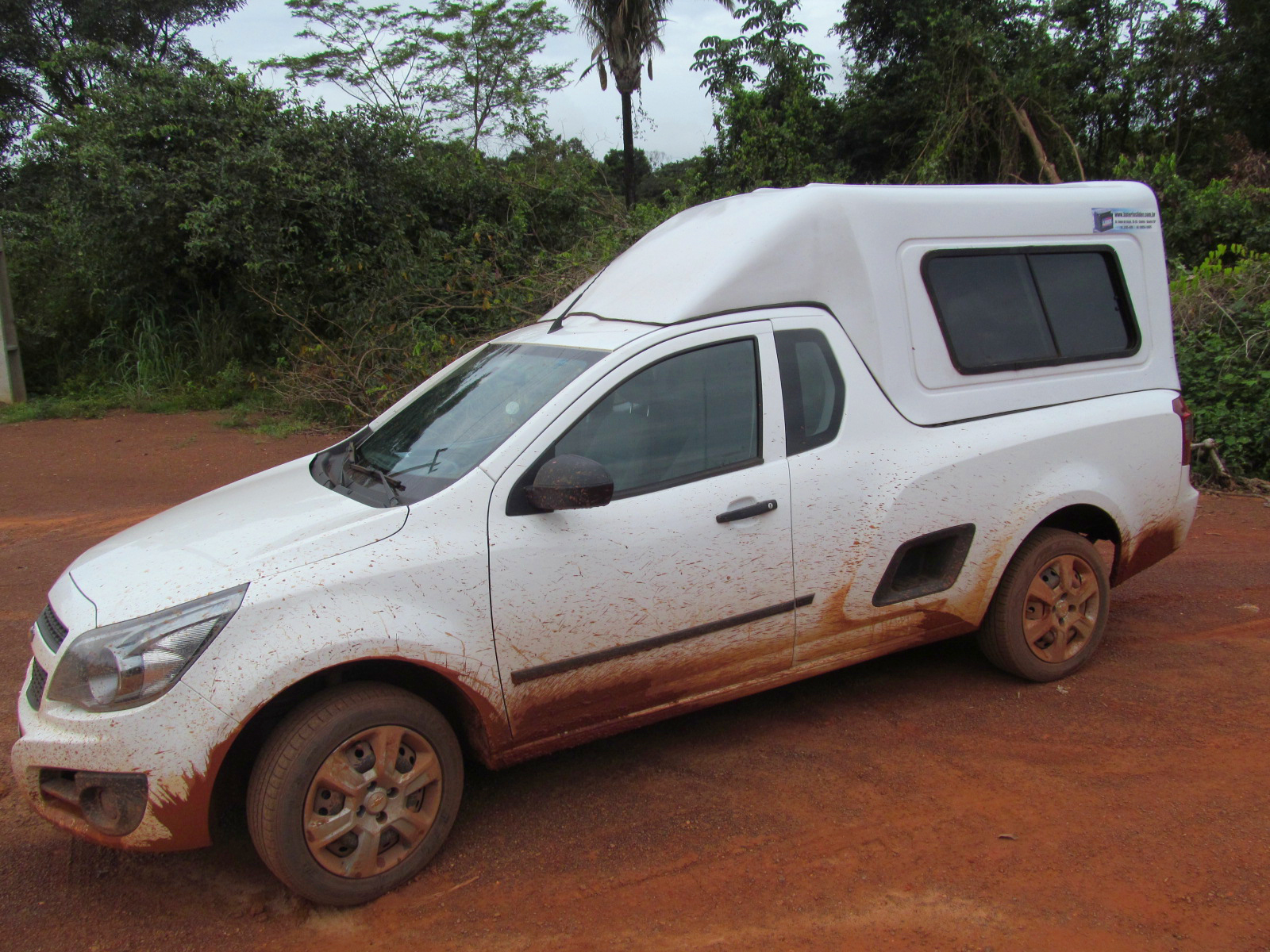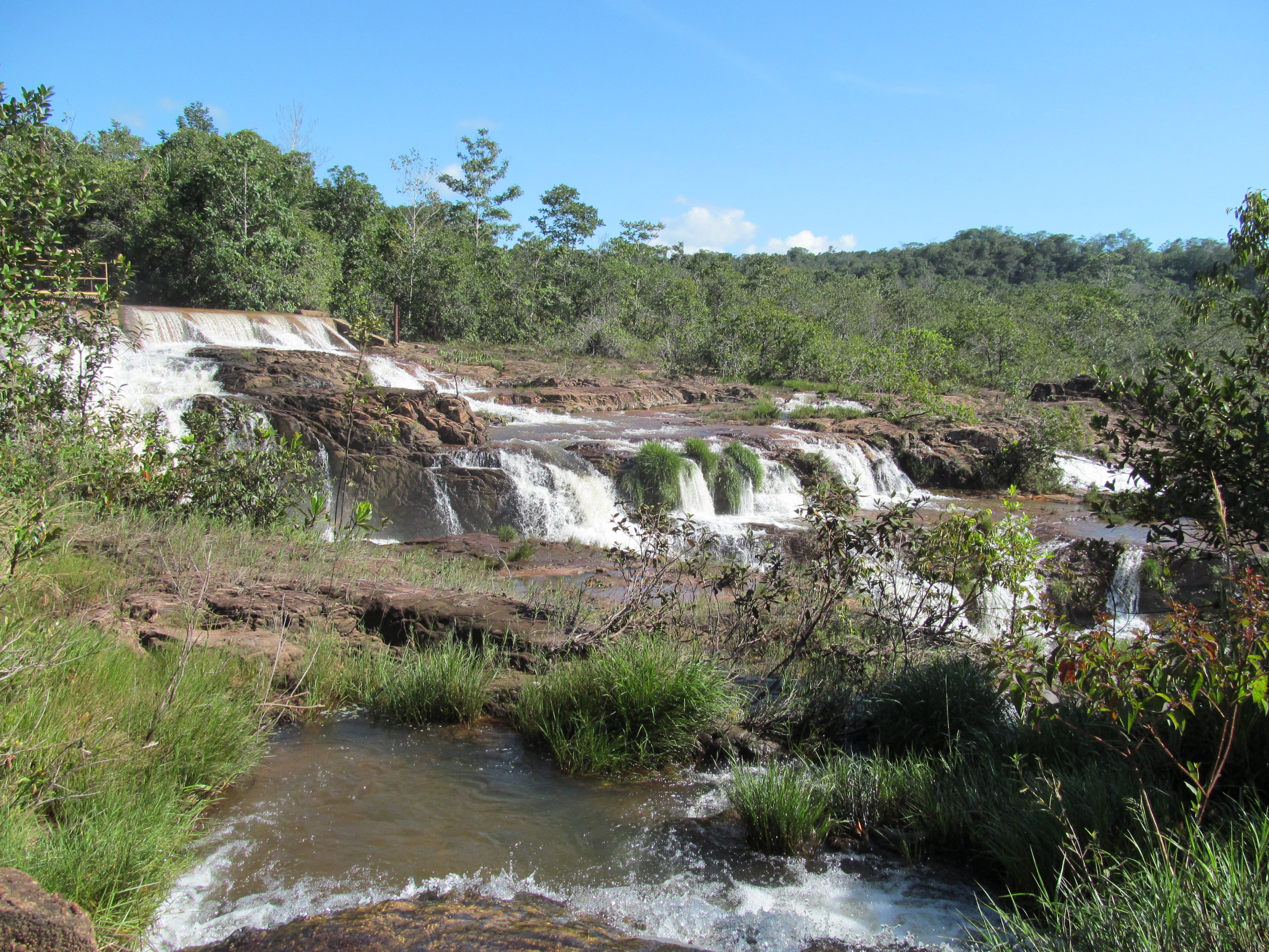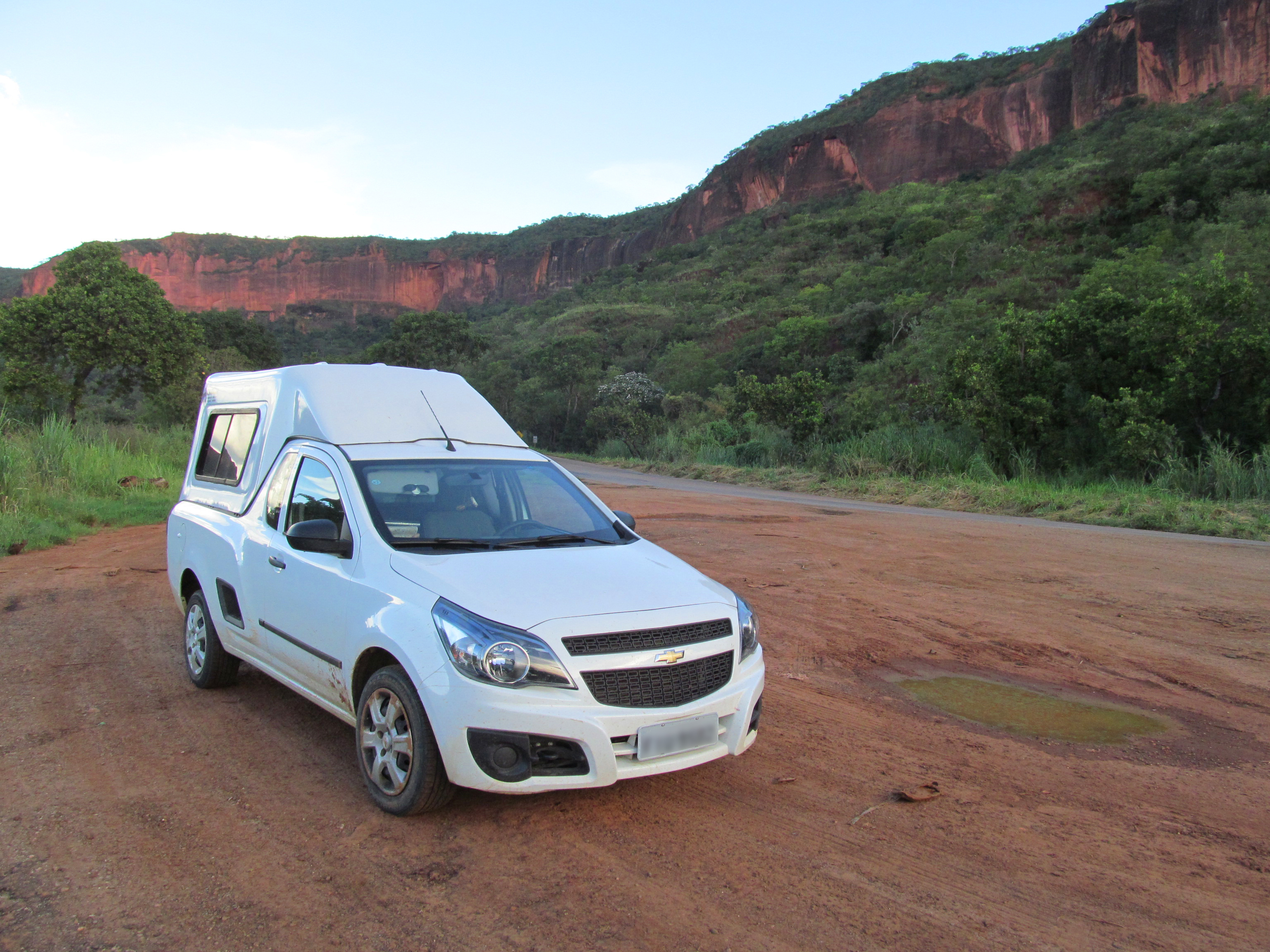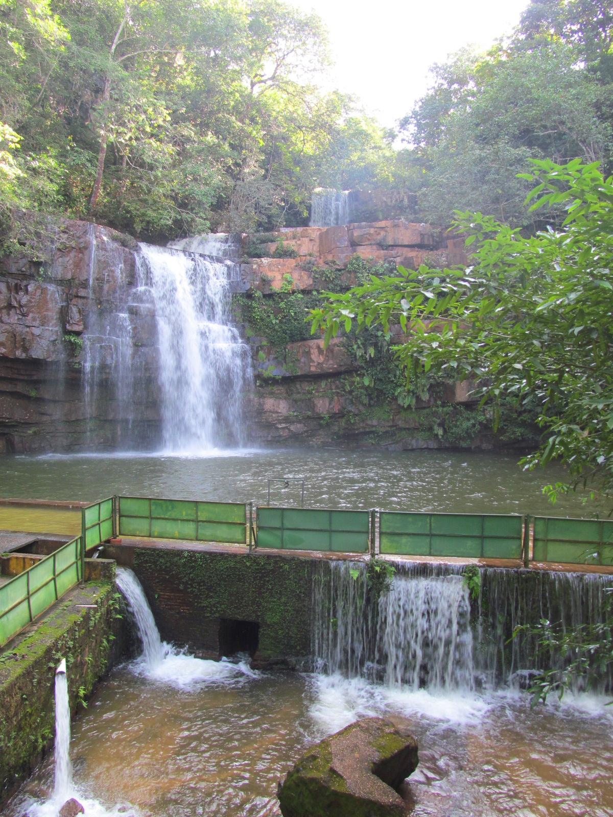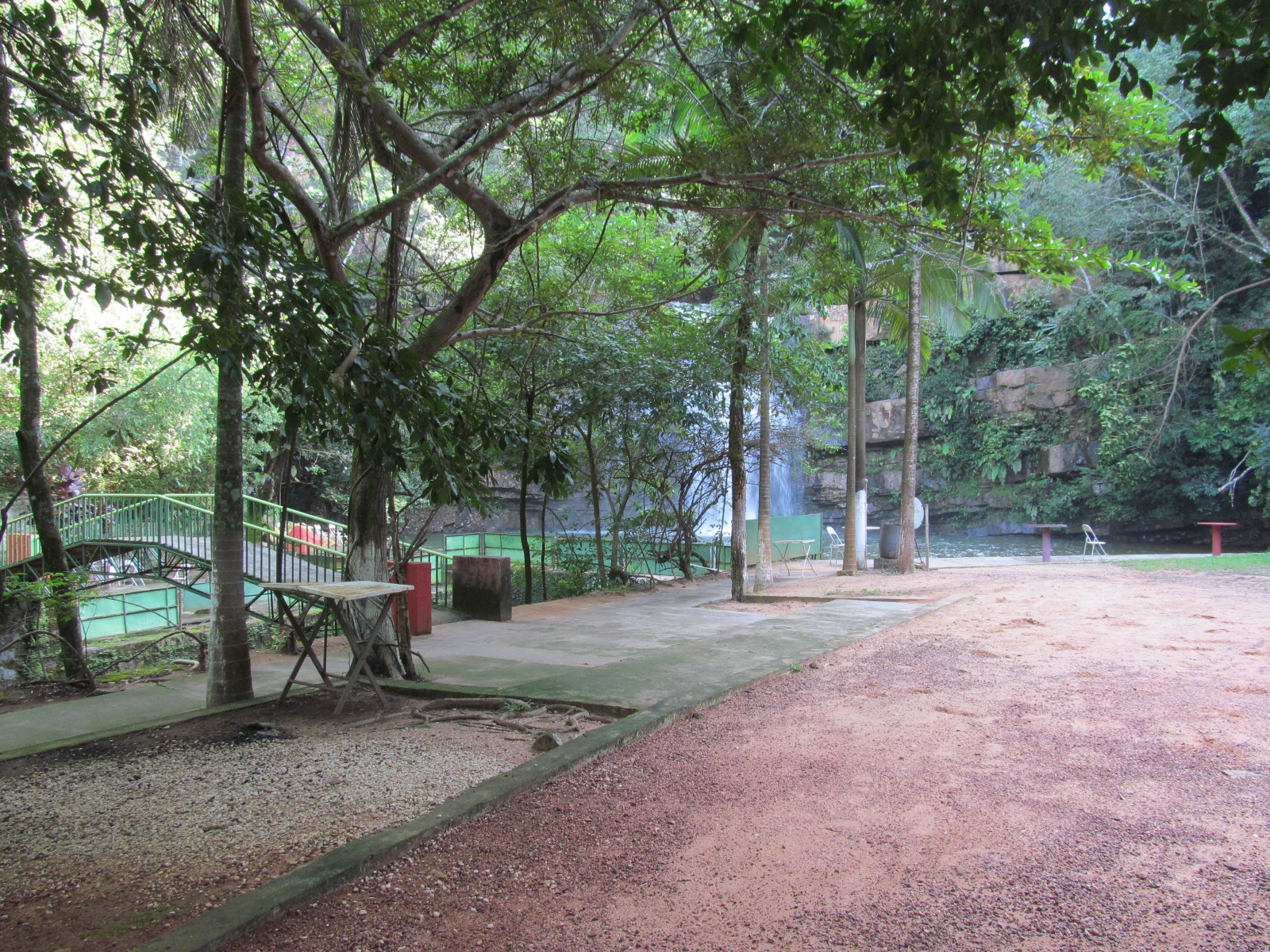 Minhas primeiras férias do novo trabalho finalmente chegaram! Resolvemos aproveitar 15 dias para conhecer a Chapada dos Guimarães e um pouco do centro-oeste brasileiro. A Montana estava com uma capota de fibra com janelas, o que nos possibilitou economizar algumas noites com pousadas/hotéis, e também não nos preocupar muito com espaço para bagagens. Revolteio saindo de Bauru depois do almoço no dia 5 em direção ao Mato Grosso do Sul. Rodamos bastante e paramos para dormir em Cassilândia-MS. Demos uma volta pela cidade, andamos um pouco e fomos dormir. Hotel ? Pousada ? Camping ? Nada disso, dormimos na caçamba da Montana em um posto de gasolina. Aproveitamos o banheiro do posto para tomar banho e ficamos lá mesmo. A noite foi bem ruim (até porquê lá é um calor infernal), além do barulho e pernilongos. Mas tudo bem, sobrevivemos e economizamos uma estadia. No dia seguinte acordamos cedo e fomos visitar um atrativo da cidade: O Balneário do Salto, que é uma cachoeira junto à uma usina desativada que formam um conjunto muito bonito para visitação. A entrada é gratuita.