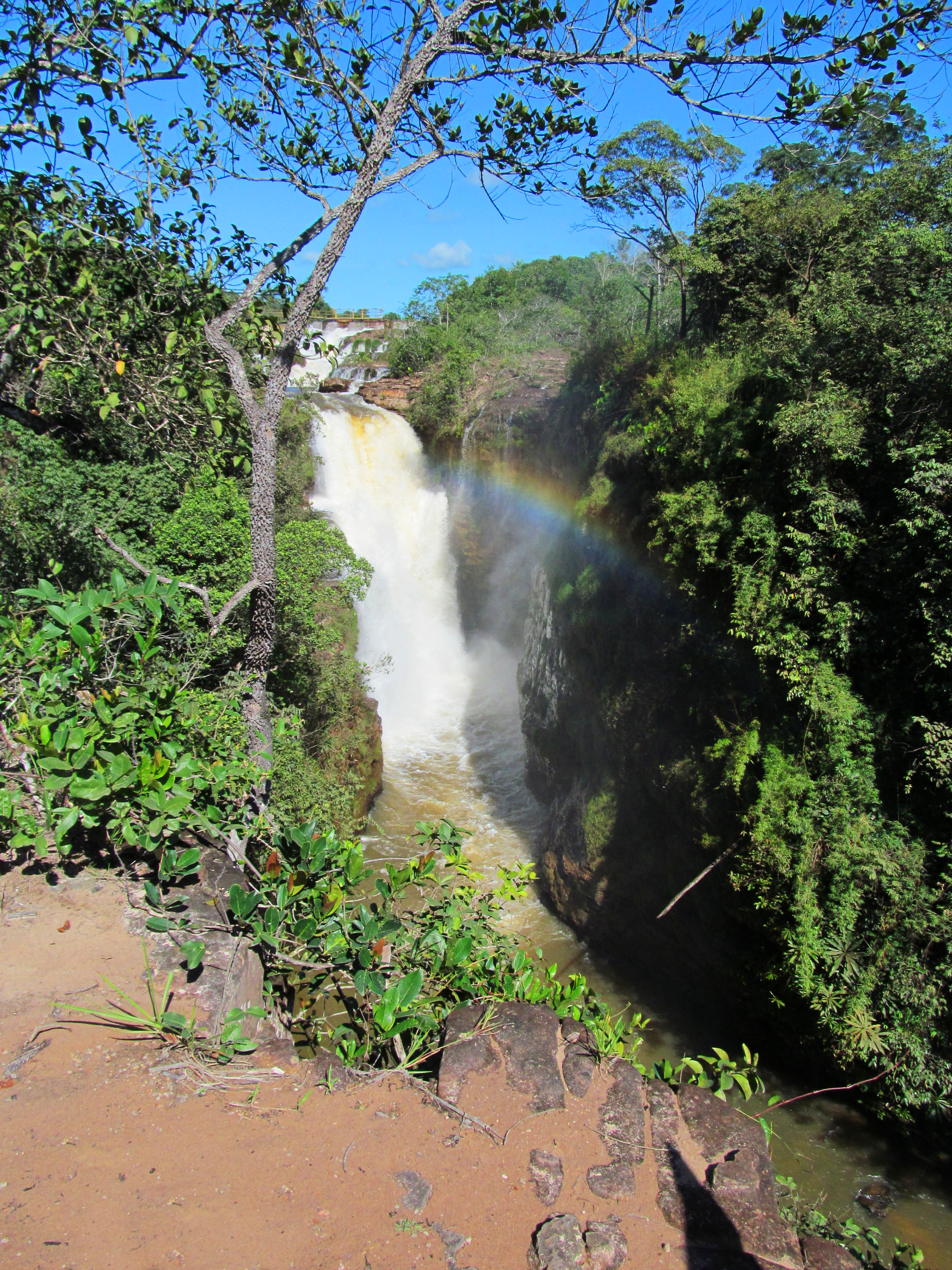 Em Jaciara conhecemos a Cachoeira da Fumaça, pagamos R$20 cada. Um pouco caro, mas um guia nos acompanhou durante o passeio, que dura cerca de uma hora. Vimos a parte de cima da queda e descemos até o lado de outra cachoeira, um pouco menor. O local também oferece passeios de rafting.