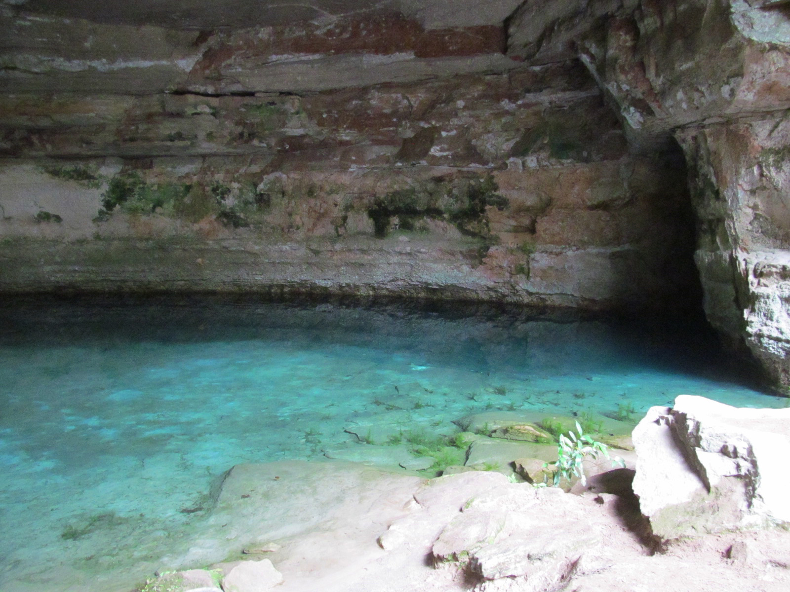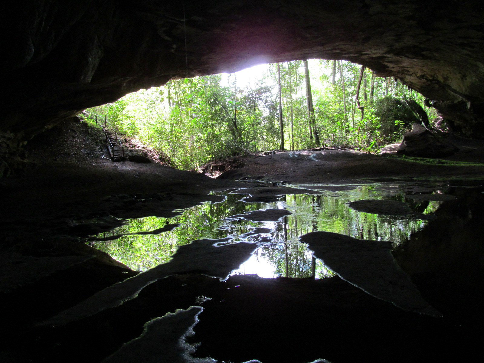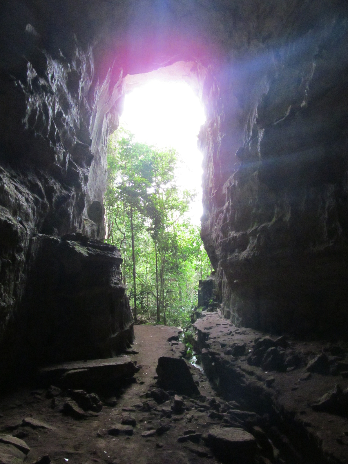 Na mesma trilha ainda conhecemos a Caverna Kiogo Brado, que pudemos atravessar. não é muito grande em extensão, mas é altíssima e é possível ver as marcas que a água fez nas paredes há milhares de anos.