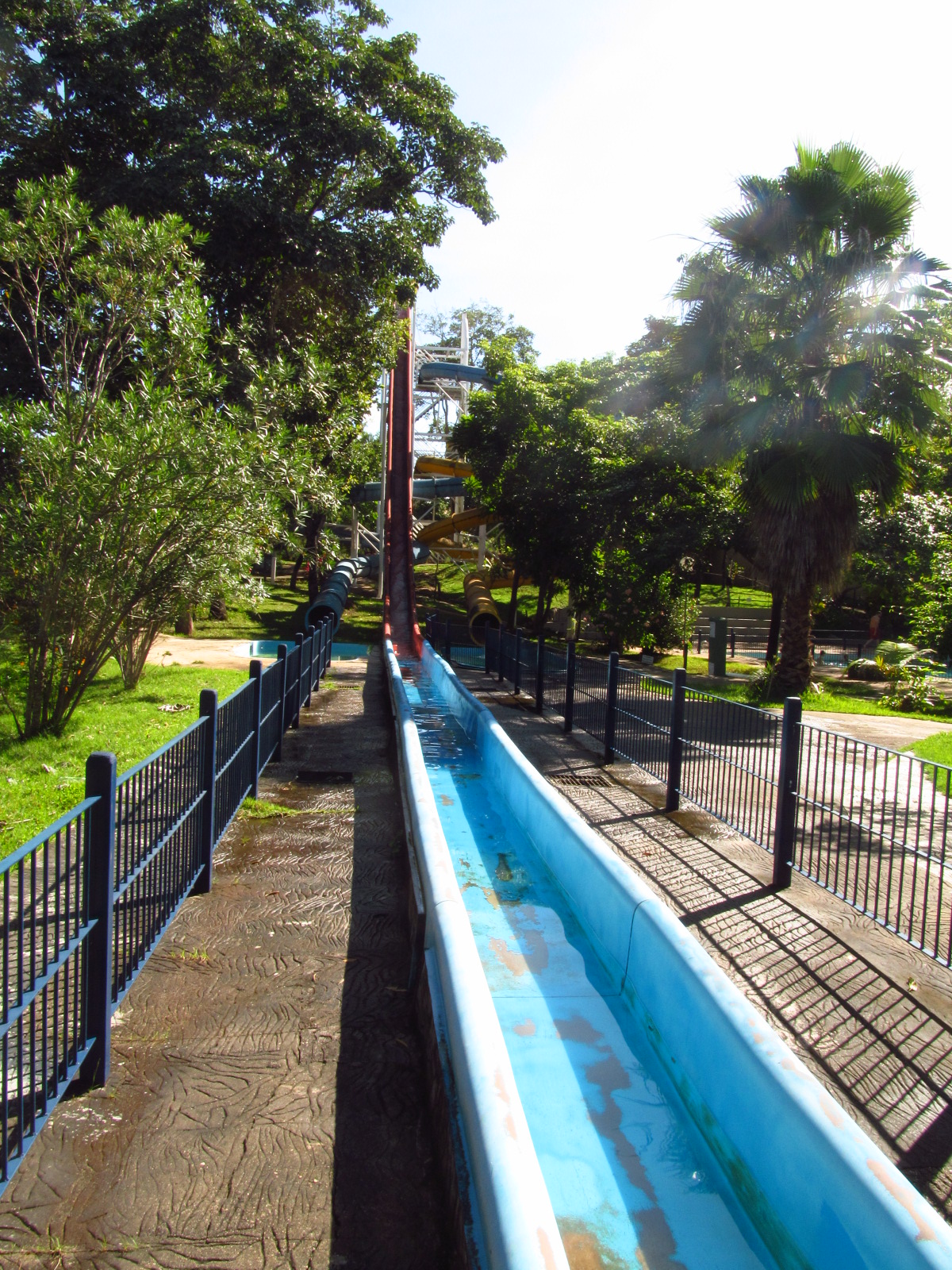 No mesmo dia ainda demos mais uma passeada pela cidade, dormimos no camping e saímos no dia seguinte depois do almoço. Rodamos cerda de 600km e chegamos no finalzinho da tarde à cidade de Barra do Garças, no lado matogrossense da divisa com o estado de Goiás. Encostada em Barra do Garças, mas já em Goiás fica a cidade de Aragarças, divididas pelo imponente Rio Araguaia. Em Barra do Garças há uma Parque das Águas Quentes, muito legal, com várias piscinas e tobogãs. No mesmo dia (que já era noite), fomos aproveitar as termas, que funcionam até às 22hs. O ingresso para passar o dia todo no local custava apenas R$5 por pessoa! Nessa noite dormimos na caçamba da Montana novamente, em frente à um posto policial.