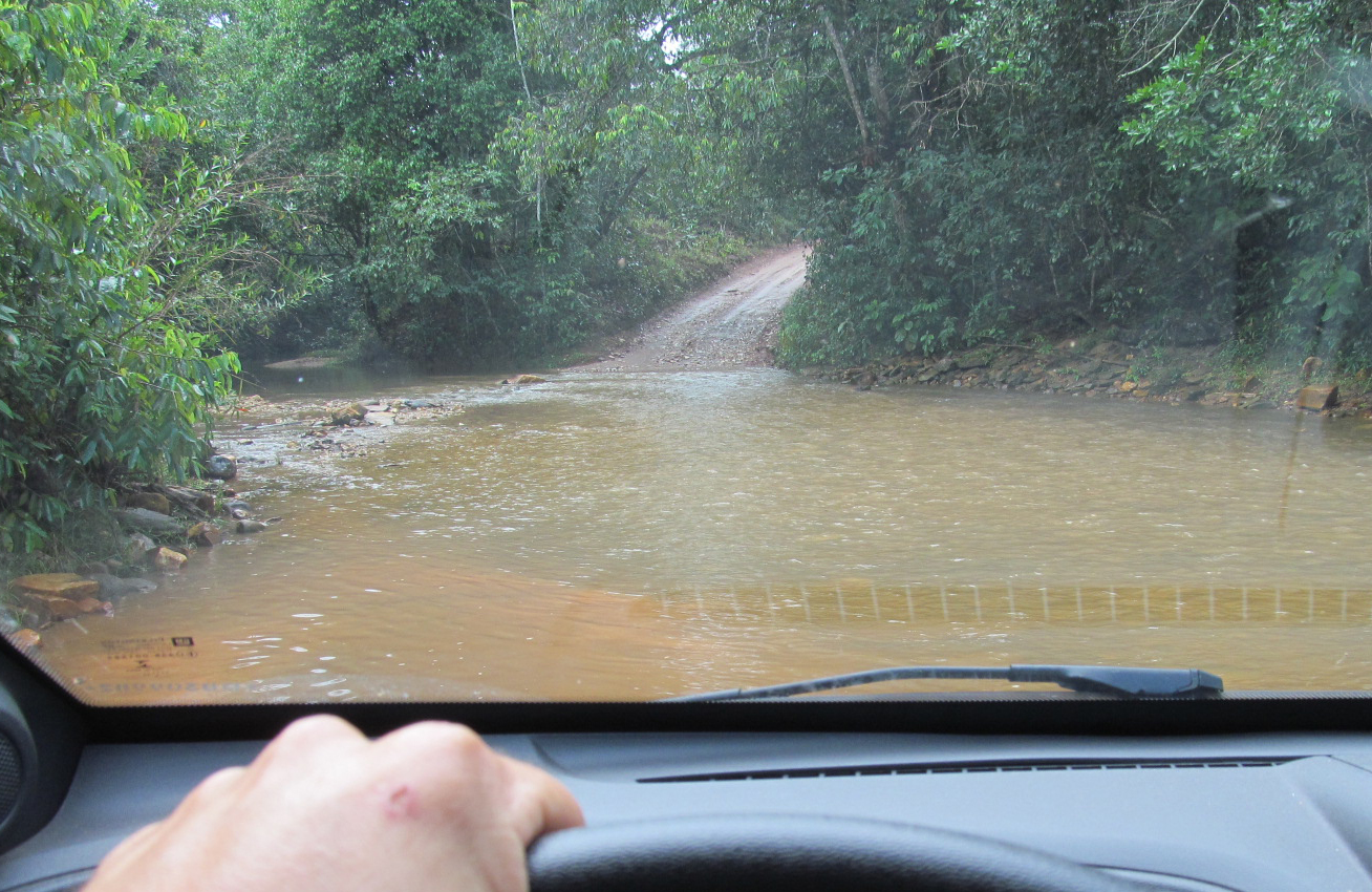 A cidade de Nobres em si não tem nada de especial, já que onde os passeios são feitos em uma vila chamada Bom Jardim, ou seja, passamos à toa por Nobres. Seguimos então para Bom Jardim. Por sinal, a estrada toda de terra, em péssimo estado, muuuito barro, o carro chegava a “dançar” na estrada. Tudo bem, passeio com emoção !