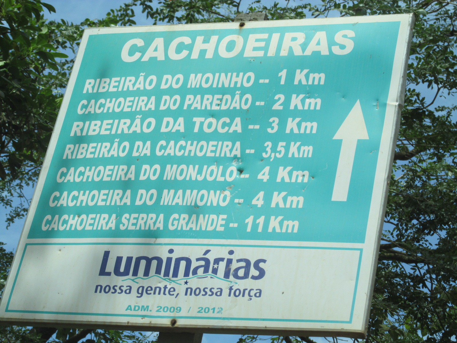 Chegando feriado de final de ano, hora de colocar na estrada a Montana com o Kit Mobiroom (agora o kit de conversão em motorhome tem um nome!). Fomos para Minas Gerais novamente, mas dessa vez, para dar um revolteio mais completo pelas cidades históricas. Dia 31 de dezembro, tudo arrumado, saímos muito cedo de Bauru, e depois de quase 600km passamos por Três Corações-MG por volta das 13hs. Seguimos então para a cidadezinha mineira de Luminárias, bem próxima a Três Corações. A cidade é muito pequena, e não há praticamente nenhuma estrutura para turismo, mas é na área rural é que estão os grandes atrativos: Rios, morros, e uma infinidade de cachoeiras e paisagens maravilhosas. Pedimos algumas informações aos moradores e seguimos para uma estradinha de terra. A primeira placa já nos deu uma amostra do que há no local.