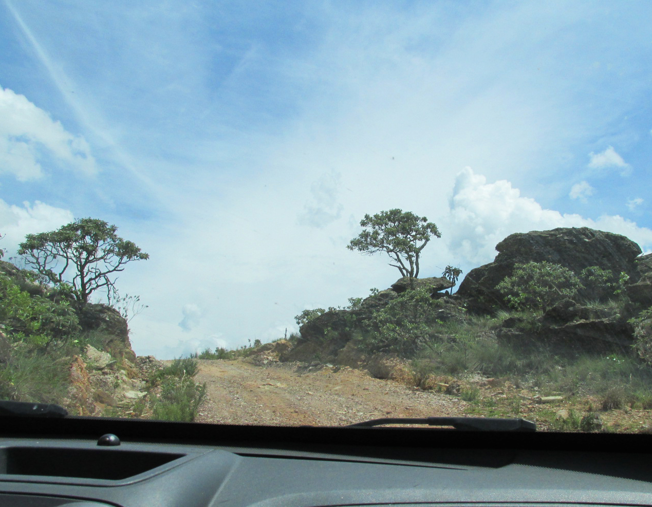 Seguimos então pela estradinha de terra, que é cortada por vários rios, com poços para banho e pequenas cachoeiras. Resolvemos ir até a última delas, a Cachoeira da Serra Grande. Depois de alguns quilômetros, a estrada de terra começou a ficar bem precária, e cada vez mais íngrime. Em alguns momentos a Montana sofreu para continuar o caminho. Após a subida do morro, a vista de lá foi recompensadora.