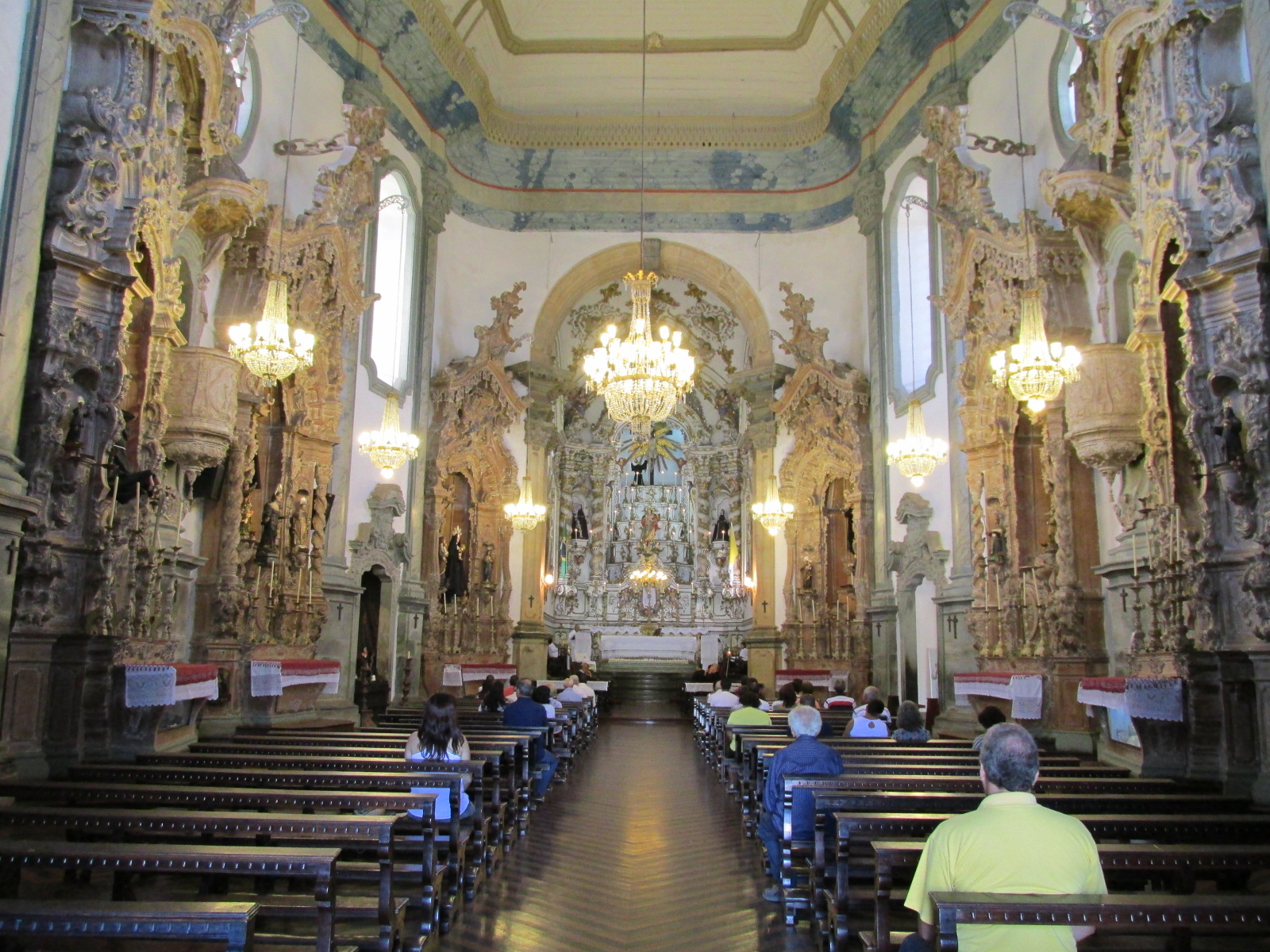 Passeamos pelas ruas de pedra, que estavam molhadas por conta da chuva (e como dá trabalho andar de carro em Ouro Preto), cheio de ladeiras escorregadias, estreitas e íngremes. Se não fosse a chuva, talvez fosse melhor conhecer a cidade caminhando. Vimos a Igreja São Francisco de Assis, e também a Universidade Federal de Ouro Preto. No meio cidade tem uma praça muito grande (uma das poucas partes planas de lá, rs) com um mastro no meio. Diz a história que lá foi exposta a cabeça de Tiradentes (!). Nessa praça também está o Museu da Inconfidência, e também algumas lojas de artesanato, bares e restaurantes.