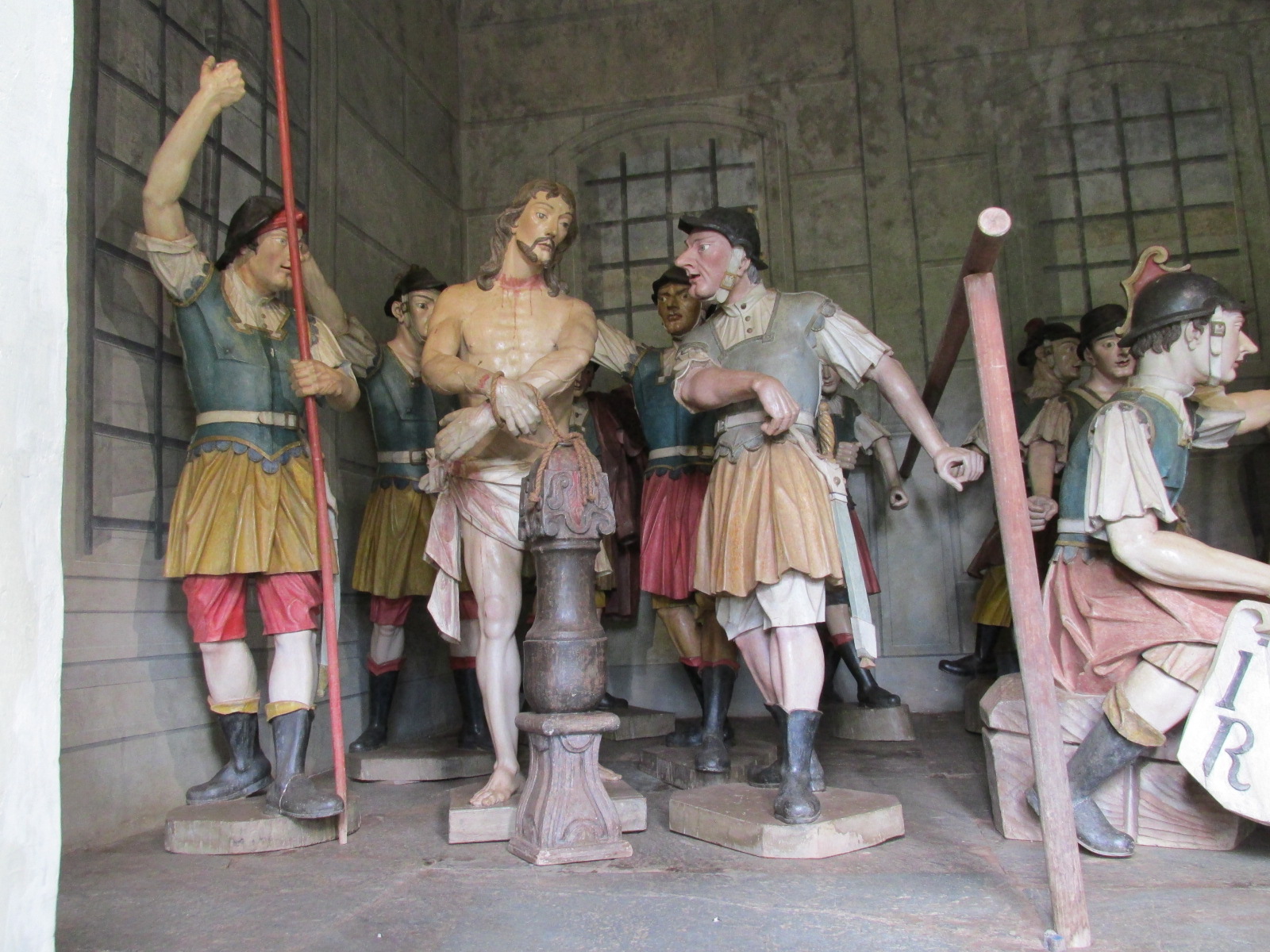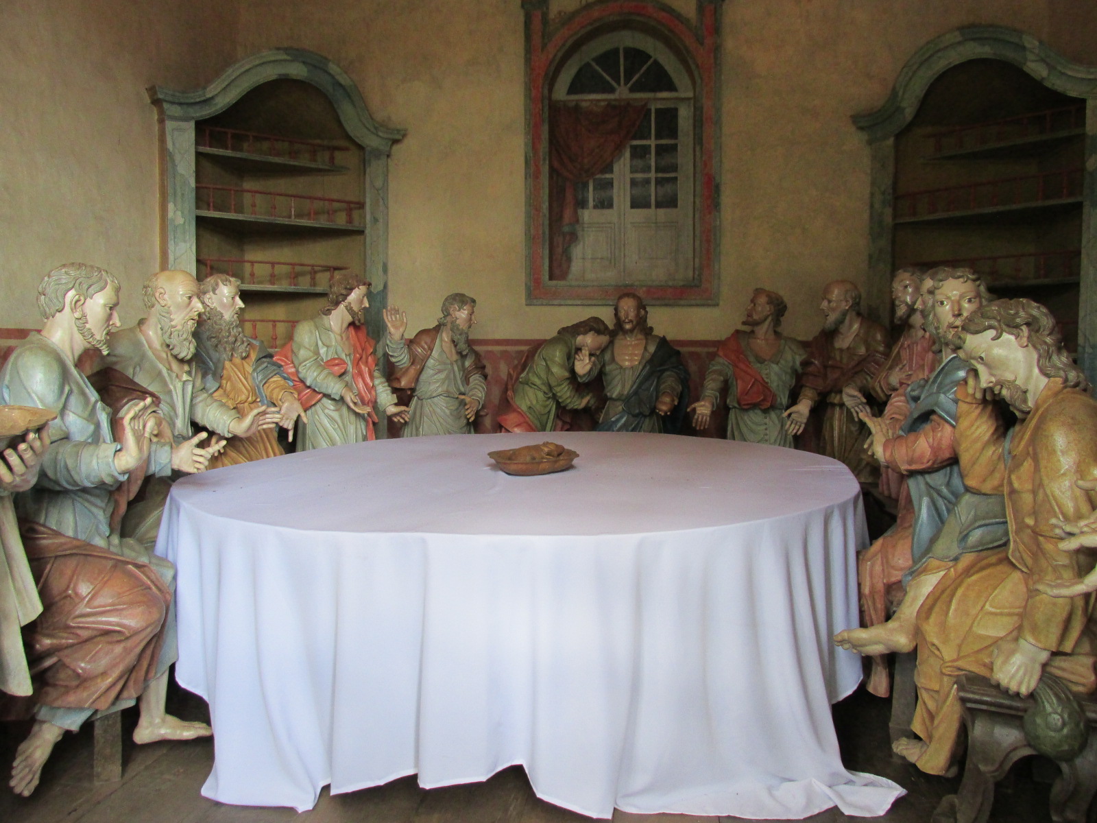 No mesmo santuário, um pouco abaixo, há várias capelas com as etapas da Via Crucis, com todos os personagens entalhados e pintados em madeira também pelo escultor Aleijadinho. As cenas são muito interessantes, todas as as esculturas tem tamanhos reais e expressões e movimentos muito bem feitos. Pena que as capelas que estão as esculturas de madeira ficam fechadas, sendo possível vê-las apenas por pequenas aberturas nas portas.