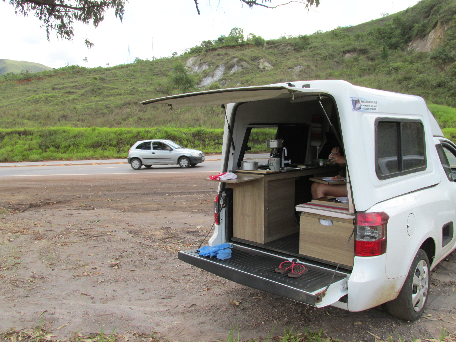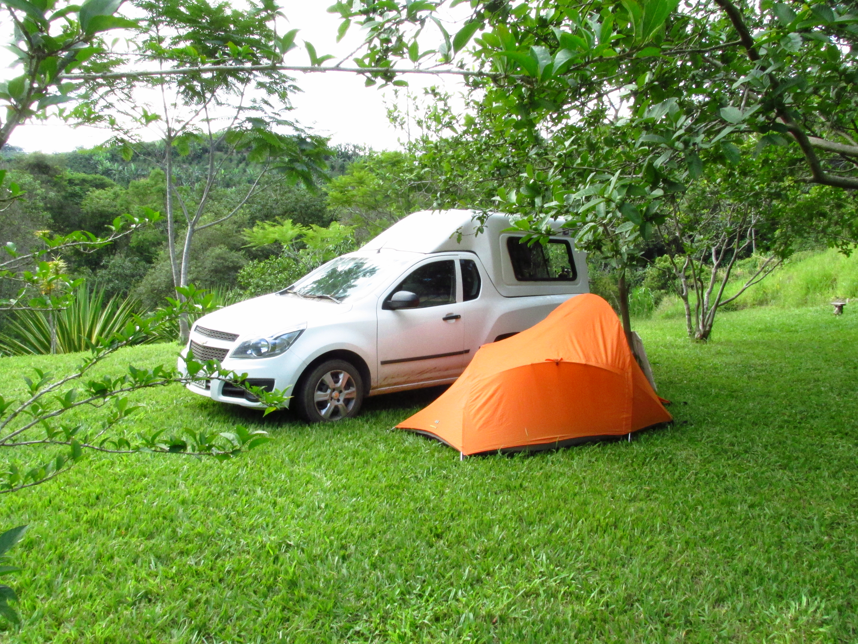Nesse dia ficamos no bar conversando e tocando violão até tarde da noite com os proprietários e uma família que estava acampando também. Fizemos a janta no carro (Mobiroom!), e dormimos muito bem. No dia seguinte, fomos conhecer um belo atrativo do camping. A Cachoeira do Roncador. A propriedade é dos mesmos donos do camping, e quem visita paga R$10 para entrar, mas quem está acampado pode entrar de graça. Seguimos uma trilha margeando o rio, com várias quedas e poços para banho. A Cachoeira do Roncador é bem alta, vale a pena o passeio. Ficamos lá bastante tempo.