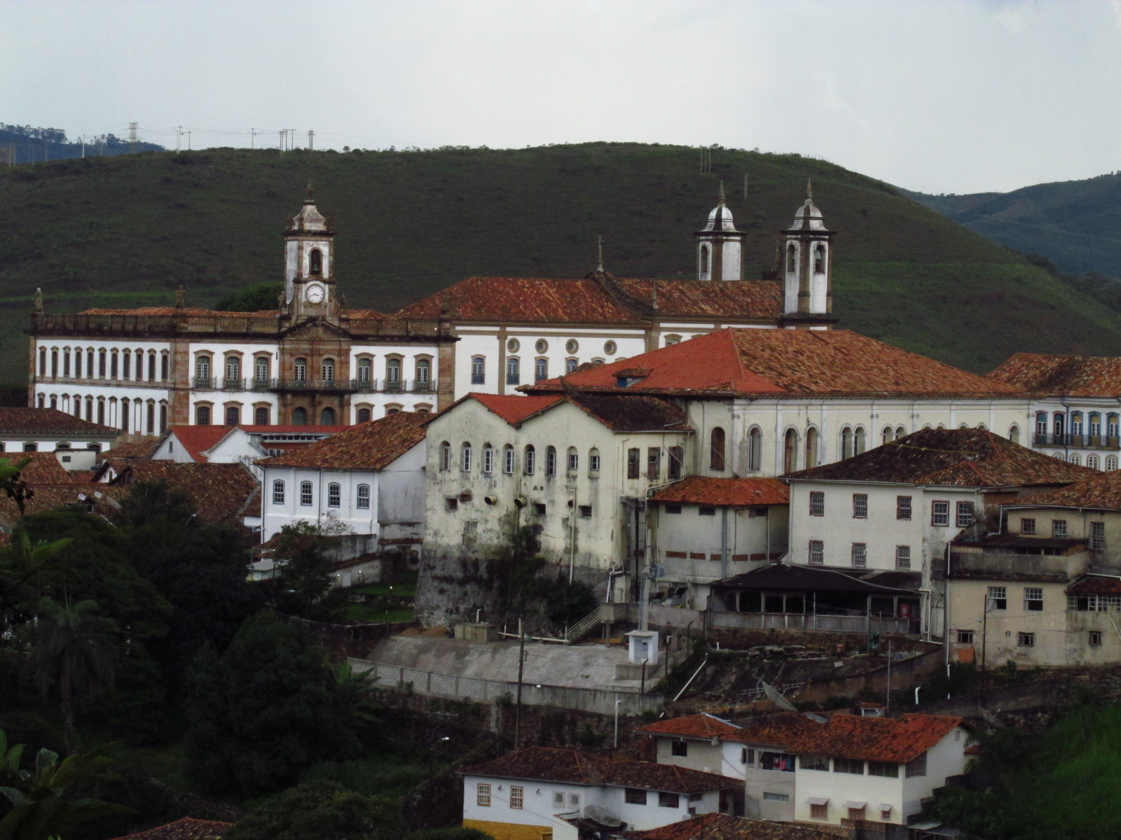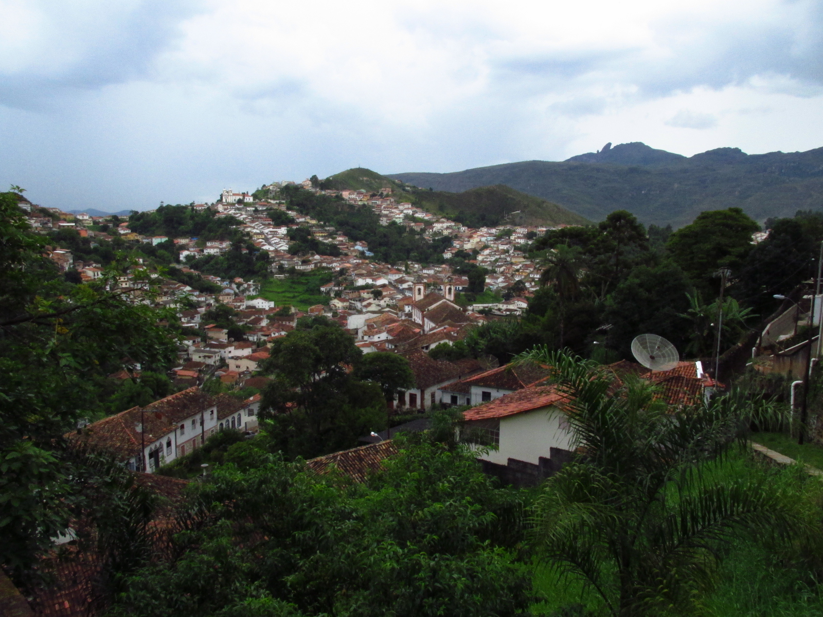 Saímos de Congonhas no início da tarde, paramos para almoçar na beira da estrada (no carro), e seguimos para Ouro Preto. O tempo estava feio e já estava dando umas pancadas de chuva. Chegamos em Ouro Preto por volta das 15hs. A cidade é muito legal, toda de pedra, e como chegamos em uma parte alta da cidade, paramos na Igreja Nossa Senhora do Rosário, e de lá vimos que a cidade fica no meio de um monte de morros, as casas de pedra parecem estar empilhadas. Como era feriado (01/01), demos o azar de muitos museus e igrejas da cidade estarem fechados, então praticamente só vimos as construções históricas por fora.