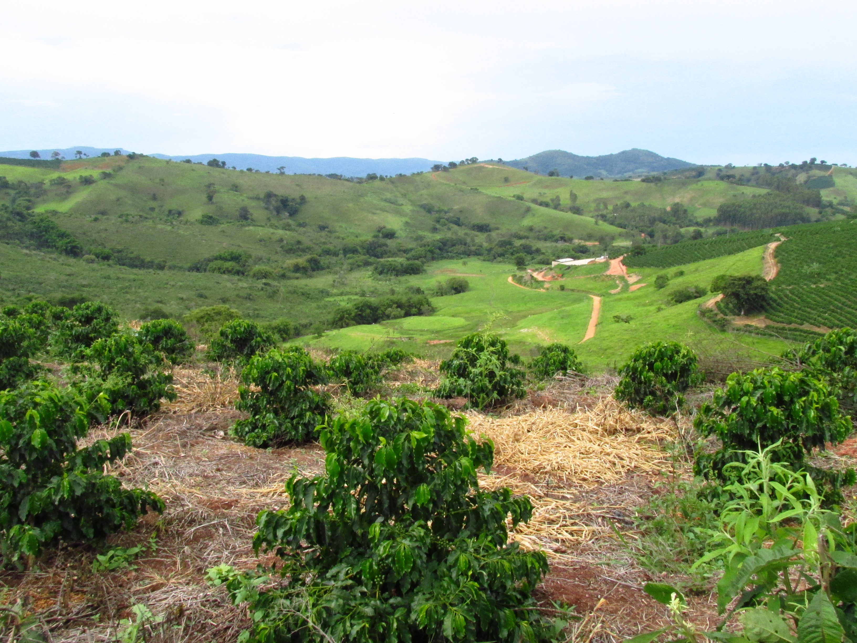 À tarde, saímos para dar uma caminhada. Próximo ao camping, há vários morros e trilhas, então pegamos uma dessas e fomos subindo, beirando um cafezal imenso. Lá de cima, a vista é linda, dá para ver o camping, os morros ao redor e até uma cachoeira mais acima no mesmo rio.