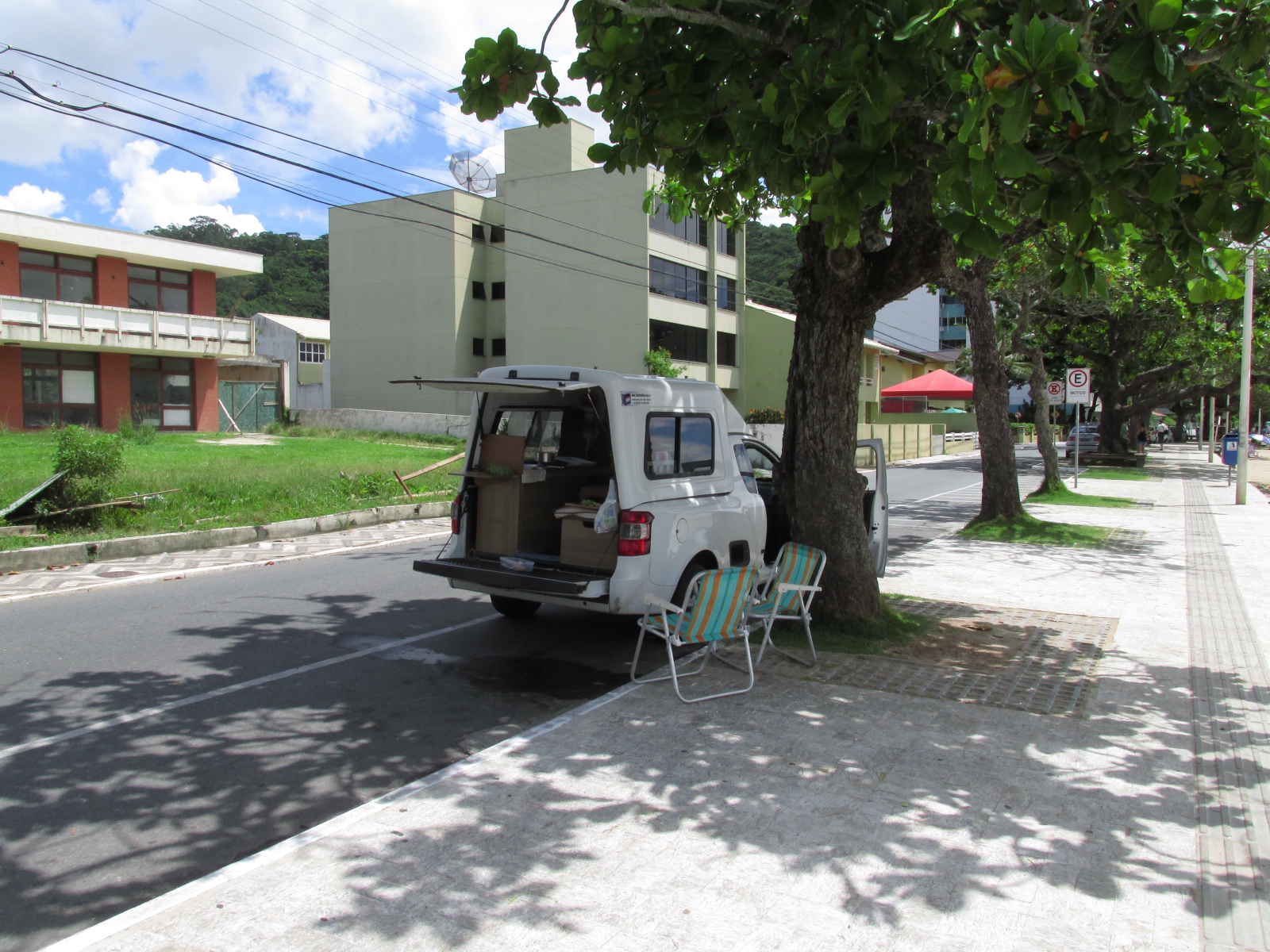 Tudo arrumado para a jornada, saímos de Bauru-SP dia 08/03 e viajamos o dia todo rumo ao sul. Paramos para dormir em um hotelzinho de beira de estrada bem feio (mas barato, R$35 por pessoa) próximo à Joinville-SC. No dia seguinte acordamos cedo e continuamos a viagem até Barra Velha, já no litoral Catarinense, onde paramos para ver a Praia das Pedras Brancas e Negras (bem interessante, o nome já diz tudo !) e depois seguimos para Itajaí. Ao entrarmos na cidade, tivemos uma má impressão, pois as ruas estavam em reforma, e por conta do movimento dos caminhões no porto (que é enorme), o local estava um caos ! Aos poucos, a má impressão foi passando, e fomos vendo que a cidade era muito bonita. Paramos para conhecer o Centro de Cultura Popular Mercado Velho, muito simpático, de arquitetura antiga, em frente a praia, e cheio de lanchonetes e lojinhas de artesanato. Demos uma volta por lá e seguimos para um mercado de peixes e frutos do mar a preços convidativos bem próximo dali, onde é claro, compramos um belo pedaço de atum para nosso almoço !