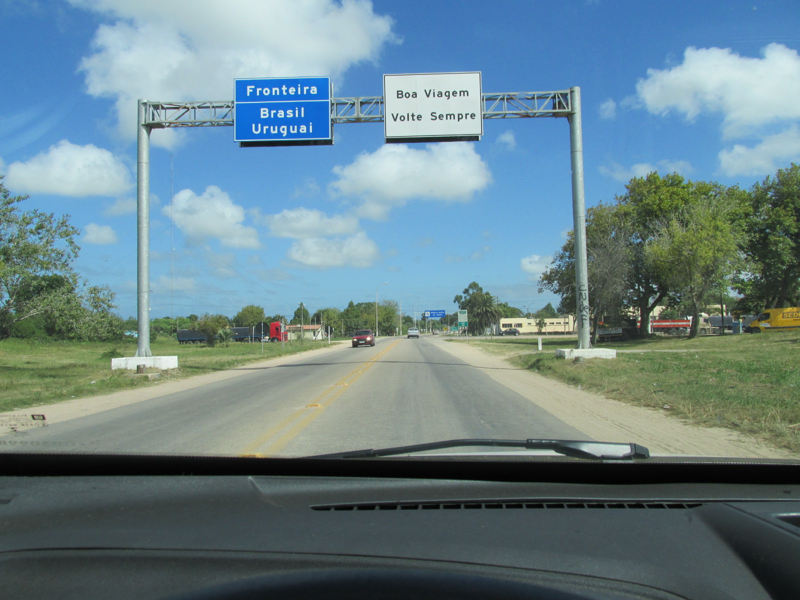 Enfim, por volta das 16hs chegamos ao extremo sul do Brasil: A cidade de Chuí-RS ! Passamos pela aduana brasileira, que fica um pouco antes da cidade, mas não precisamos parar. A cidade de Chuí é bem pacata, diferente por exemplo da divisa do Brasil com o Paraguai, que conhecemos um ano antes. A fronteira com o Uruguai é quase imperceptível. Na verdade é uma avenida no centro da cidade, que de um lado é Brasil (Chuí), e do outro é Uruguai (Chuy). O engraçado é que as lojas e restaurantes da avenida de um lado são todos em português e do outro tudo em espanhol.
