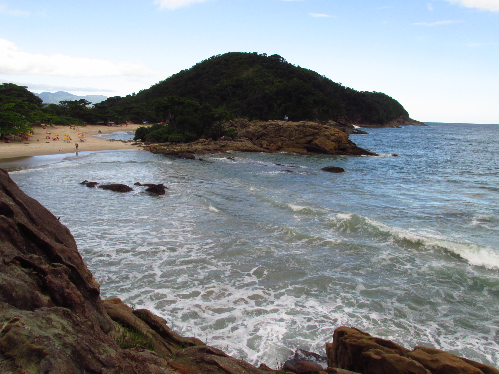 Lá pelas 15hs, fomos de carro até o bairro de Trindade, que fica a poucos quilômetros de Paraty. Subimos um morro muito íngrime, depois descemos em direção ao pequeno bairro. O primeiro lugar que se vê ao chegar é a Praia do Cepilho, de um azul impressionante, mas muito funda, e o mar muito agitado. Impossível de nadar ! Mas vale a pena pelo visual ! Continuamos até o bairro, que tinha muita gente, um movimento absurdo ! Trindade tem uma estrutura razoável de turismo, campings, pousadas, restaurantes, mas tudo caro, tal como Paraty. Então paramos o carro e fomos caminhando conhecer mais algumas praias. Depois de uma pequena trilha, chegamos à Praia do Meio, de água muito verde, e o mar um pouco agitado, mas mesmo assim muitas pessoas nadando !