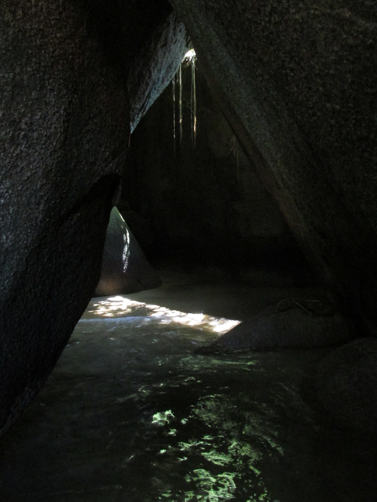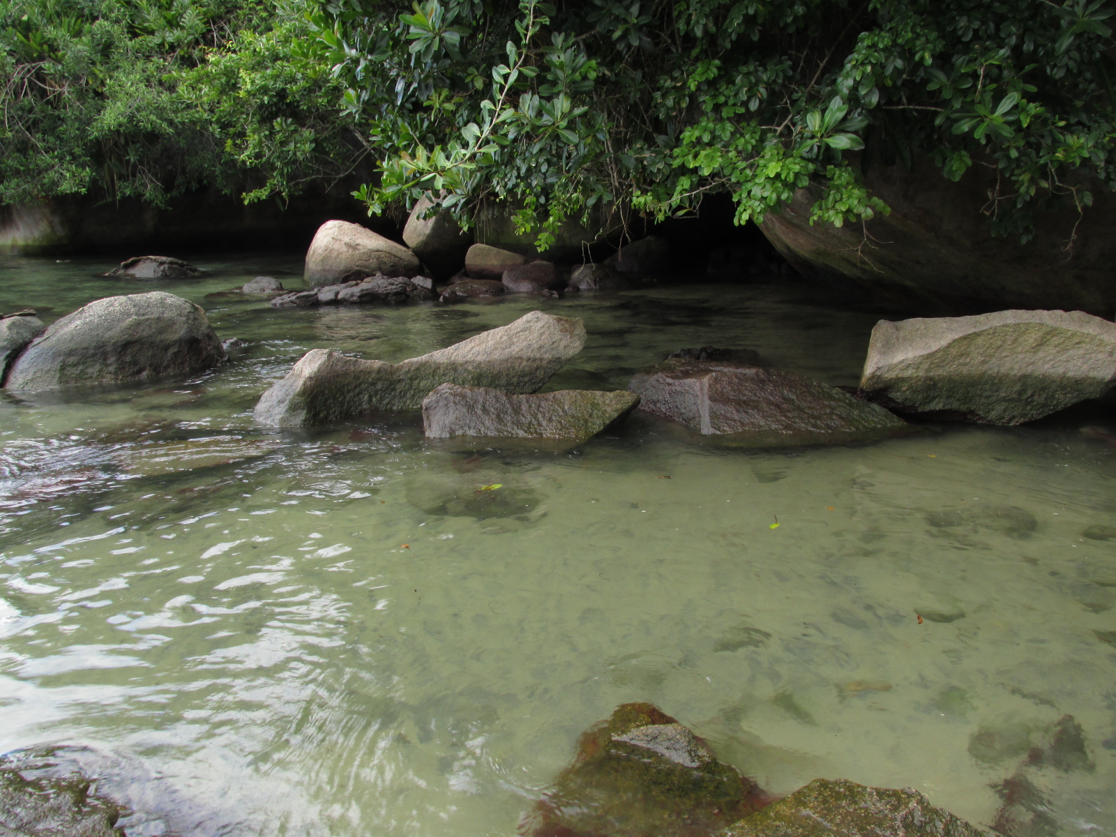 Atravessamos a praia e continuamos na trilha em meio à mata, andamos cerca de vinte minutos e chegamos a um lugar paradisíaco: As Piscinas Naturais do Cachadaço. É um local onde não há ondas, e a água é muito limpa, dá para ver muitos peixes. Não é fundo e a temperatura da água é bem agradável.