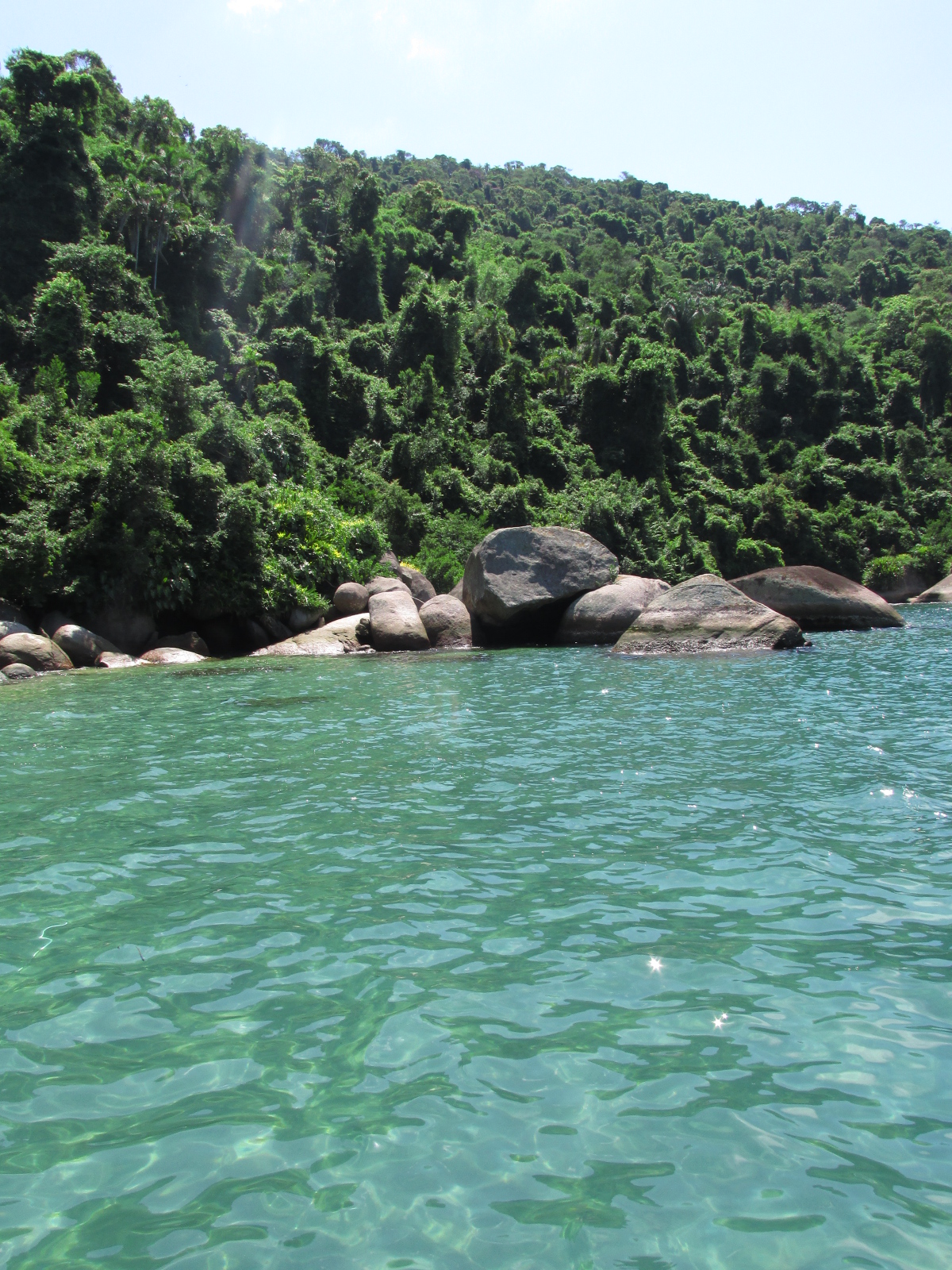 Nosso passeio durou cerca de 4 horas parando meia hora em cada lugar. Primeiro paramos na praia Saco da Velha (onde conhecemos uma gruta de pedras na beira do mar), depois fomos à Praia da Lula, e finalmente à Praia Vermelha (achei a mais bonita delas, pela cor e transparência da água). Todas muito limpas e cheias de Mata Atlântica ao redor. Quando a escuna para próximo às praias, é possível nadar já ao lado do barco, onde normalmente não dá pé, ou ir com um bote inflável até a margem. Normalmente as empresas emprestam coletes salva-vidas. Já no final do passeio, paramos próximo à uma ilha para almoçar. Arroz com filé de peixe e molho de camarão. Muito bom !