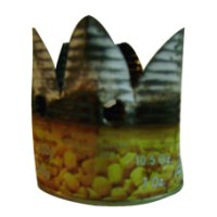Agora, “divida” a lata em 6 partes iguais, do fundo até a borda superior, faça pontas nas 6 partes, depois arredonde elas. Dobre as “abas” que ficarão em um forma de “U”. Fure com a broca de 8mm todas as “abas” no mesmo sentido. Assim, o ar circula pela lata, fazendo com que o fogo suba em espiral.