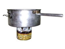 Obs: Não coloque panela grande ou pesada sobre a espiriteira. A que está na foto é de apenas 1 litro !
