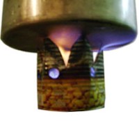 Coloque o álcool até a altura próxima aos furos (mais ou menos 100 ml), sem que vaze por eles. Ao acender o álcool, (cuidado !!!) o fogo sobe até 20cm acima da espiriteira, mas assim que colocamos a panela sobre ela, o fogo se espalha no fundo da panela, distribuindo o calor.
