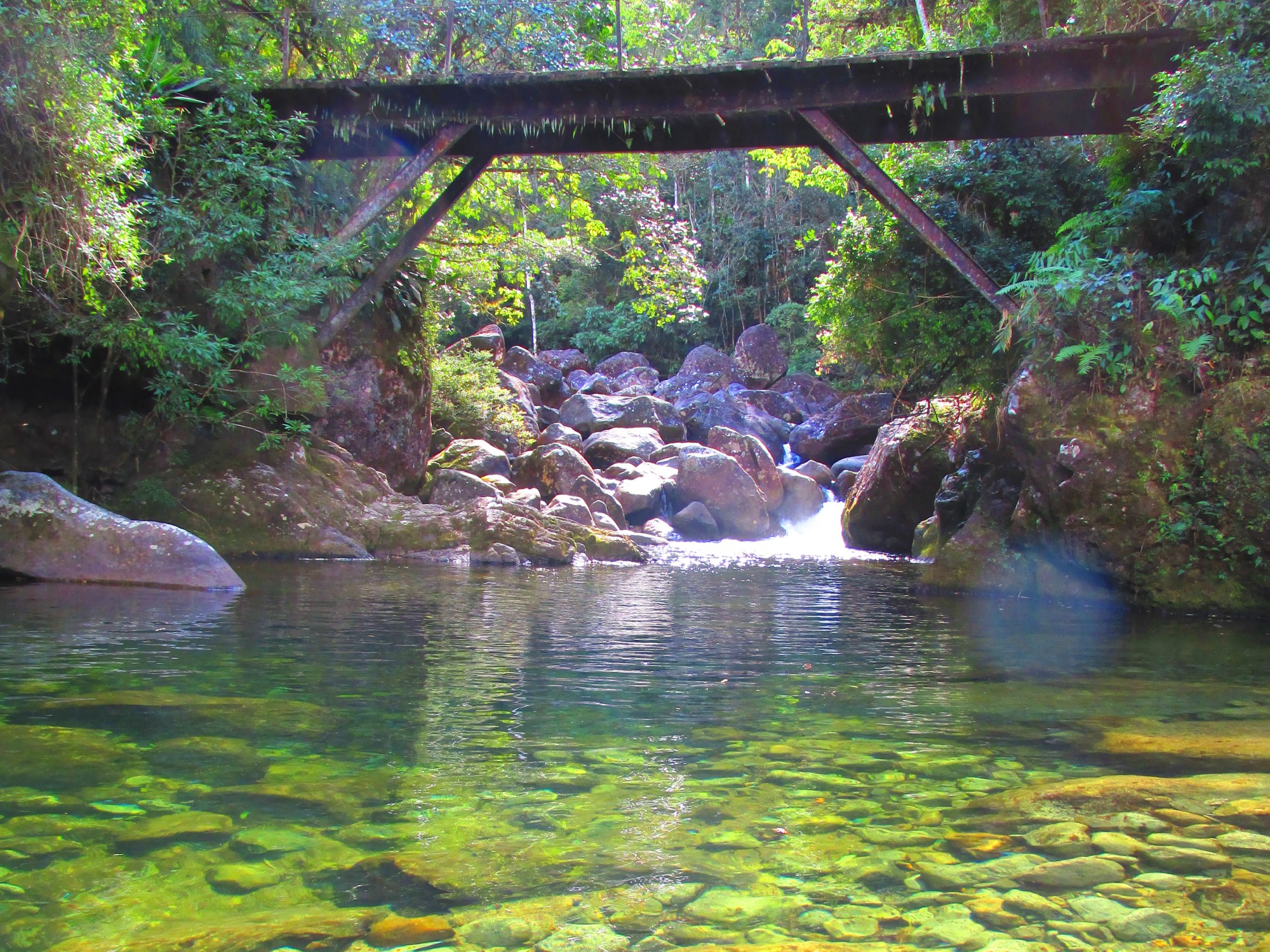 Subimos um pouco o rio, vimos mais alguns lagos e corredeiras. Voltamos para o carro e subimos em direção à Piscina da Maromba. Lá tem um estacionamento e uma escadaria que chega à uma pequena cachoeira um lago. O lago impressiona pelo tamanho e transparência da água. Mesmo com o céu acinzentado que estava, a água estava muito bonita!