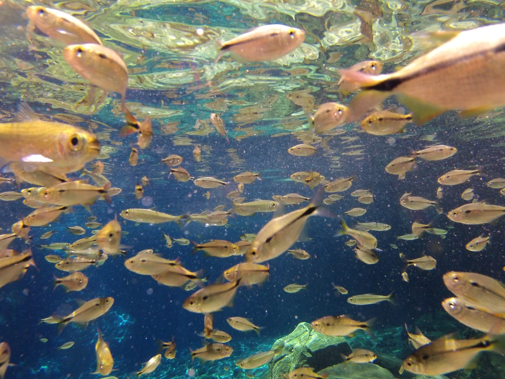 Continuamos a caminhada e chegamos no incrível Poço Azul. Lindo! Muito verde, limpíssimo. Dá pra ver tudo embaixo d’água, e tem uma cachoeira que deságua no lago. Impressionante tanta beleza no meio do cerrado, seco e quente! Nadamos bastante, mergulhamos, muitas fotos. Bom demais!