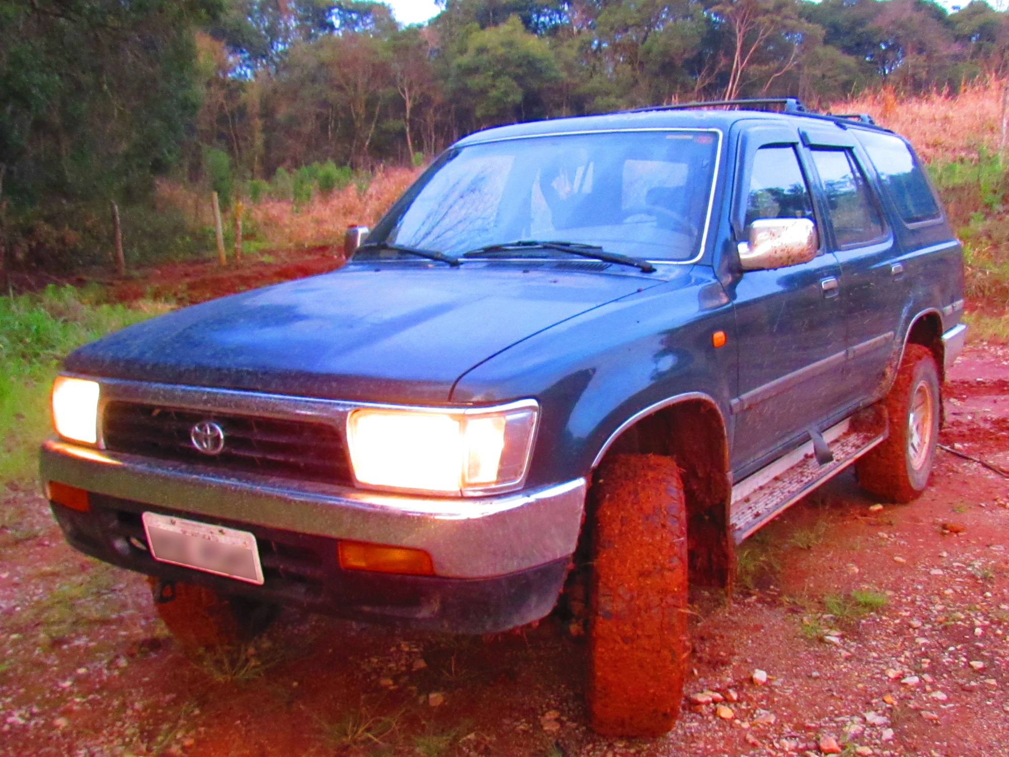 E no terceiro dia, chuva. Chuva pra caramba. Aproveitei o tempo ruim pra brincar de fazer rally com a Jubi! Fui testar! E é claro, com dicas dos moradores, peguei uma estrada super legal (e horrível, só barro) em direção a um bairro rural chamado “Tocas“. Resumindo: Barro, barro, barro… estrada lisa, alagada, ladeiras e muita mata fechada. Já valeu o teste para o 4×4. Show
