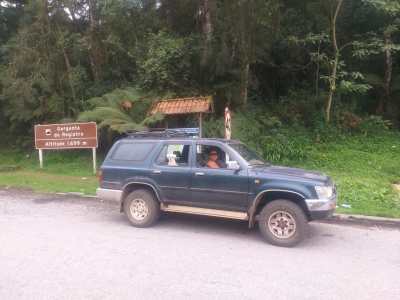 Seguimos por um bom tempo, passamos um bairro rural chamado Fragrária, e algum tempo depois, uma curva fechada à direita, e avistamos a maravilhosa Cachoeira da Fragária.