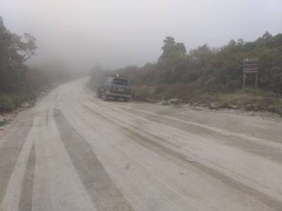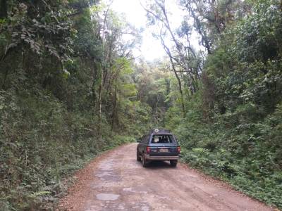 No dia seguinte, acordamos cedo, montamos na Jubiraca e fomos em direção ao Marco Zero, ou Garganta do Registro. O local é a junção dos estados SP, RJ e MG. Saímos do asfalto e pegamos uma estrada de terra à direita, que dá acesso a parte alta do Parque Nacional da Serra do Itatiaia. Andamos bastante pela estradinha de terra, com muita vegetação nativa ao redor, muita umidade e frio. A neblina cada vez mais densa.