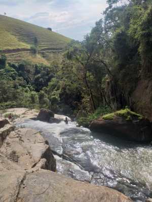 Depois, subindo mais um pouco no mapa visitamos a Cachoeira Descanso da Falésia, em um bairro rural de Paraisópolis, chamado Cruz Vera. Próximo à essa cachoeira também há um túnel desativado, bem fácil de chegar e interessante para visitar. Também demos uma parada rápida no Mercado Municipal da cidade.