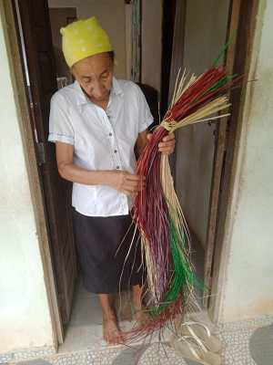 Dona Lalu na manhã seguinte também nos mostrou todo o processo da confecção dos trançados e peças de piaçava. Um processo trabalhoso e muito interessante!