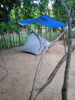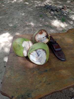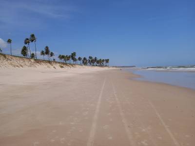 Seguimos até a vila de Diogo (Praia de Santo Antônio), ainda no município de Imbassaí. Ficamos no Camping do Seu Manuel! Ali conhecemos o Antônio (Tonho), filho do Seu Manuel. Super gente boa, conversamos bastante. O camping é super limpo e tranquilo, preço justo e uma boa estrutura. Mostrou o chalé de piaçava que fizeram no camping. Maneiro! Tomamos muita água dos cocos dos coqueiros do camping.