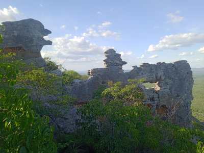 Voltamos para o camping, almoçamos, descansamos, e na parte da tarde saímos para mais uma trilha, Umburanas. Essa trilha é curta (cerca de 1km) e é interessante pois nela vemos inúmeras formações rochosas com formas de animais, navio, bruxa, etc.