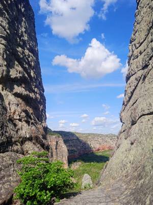 Voltamos para a vila e fomos para o Camping do Rindo. Camping legal, boa estrutura e preço justo. No dia seguinte, acordamos cedinho e fomos para a Trilha das Torres. Trilha sensacional, de 2km, com uma vista linda para a Pedra do Cachorro e também a Serra dos Lapiais. A trilha tem bastante subida, e em alguns momentos passamos perto de penhascos, lugares sensacionais, um passeio pra quem gosta de aventura!