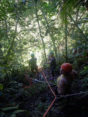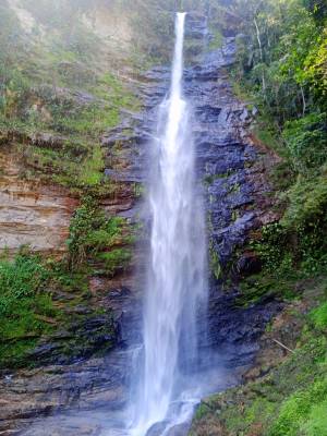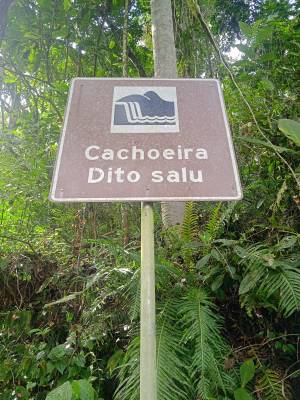 Depois do jantar, dormimos e no dia seguinte acordamos cedo, tomamos café e seguimos com a van para a Cachoeira Dito Salu, ainda no município de Barra do Turvo. Lá, a equipe da agência Águia Turismo nos acompanhou em nossa primeira atividade. Após uma breve explicação sobre o local, o guia Alex nos consduziu por uma trilha pela mata, de grau médio de dificuldade. Bastante subidas, mata fechada, até que finalmente chegamos na cabeceira da cachoeira. Aliás, foi uma ótima experiência para mim, que até então nunca tinha feito rapel. A descida foi feita pelo paredão lateral da cachoeira, ou seja, não nos molhamos durante a descida.