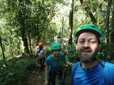 Já no finalzinho do dia, voltamos à pousada e mesmo cansados alguns do grupo (incluindo eu) fizeram o circuito de arvorismo da pousada. Muito bom também!