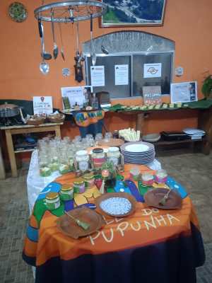 Lá ficamos hospedados na pousada João de Barro. Na pousada, fomos super bem recepcionados, as proprietárias são super hospitaleiras. A pousada é simples e aconchegante. No restaurante (onde também funciona a recepção), nos esperava um delicioso jantar à todo à base de palmito pupunha preparado pela Palmitolândia. Aliás, literalmente todo o cardápio era feito de palmito, até a sobremesa – bombocado de palmito! Maravilhoso!