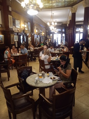 De lá ainda fomos ao Café Tortoni, uma café muito charmoso e antigo, com mais de 100 anos! Tomamos um chocolate quente com churros (clássico!)