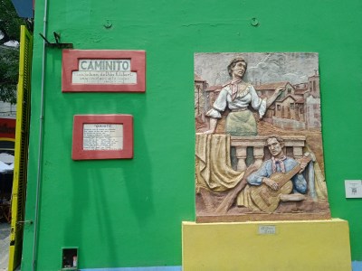 Desembarcamos no Bairro La Boca. Visitamos o El Caminito, passeamos um pouco pelas ruas do bairro. Estava bem lotado, principalmente de brasileiros. Aliás, o turismo ali é muito voltado para brasileiros. Todo lugar recebe reais, e todos que trabalham ali falam e entendem muito bem português. E os preços ali são beeem salgados.